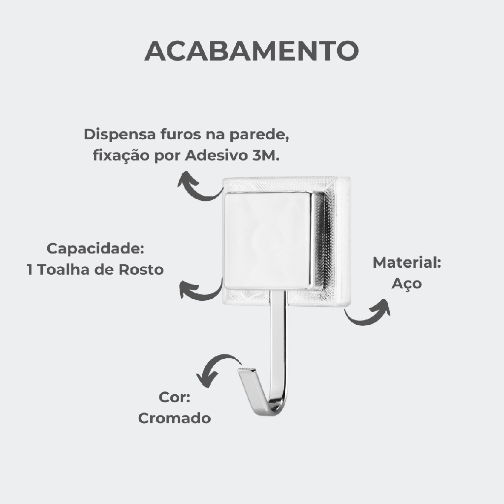 Cabide Gancho Suporte para Toalha de Rosto com Fita 3M Arthi Pendurador de Toalha em Aço