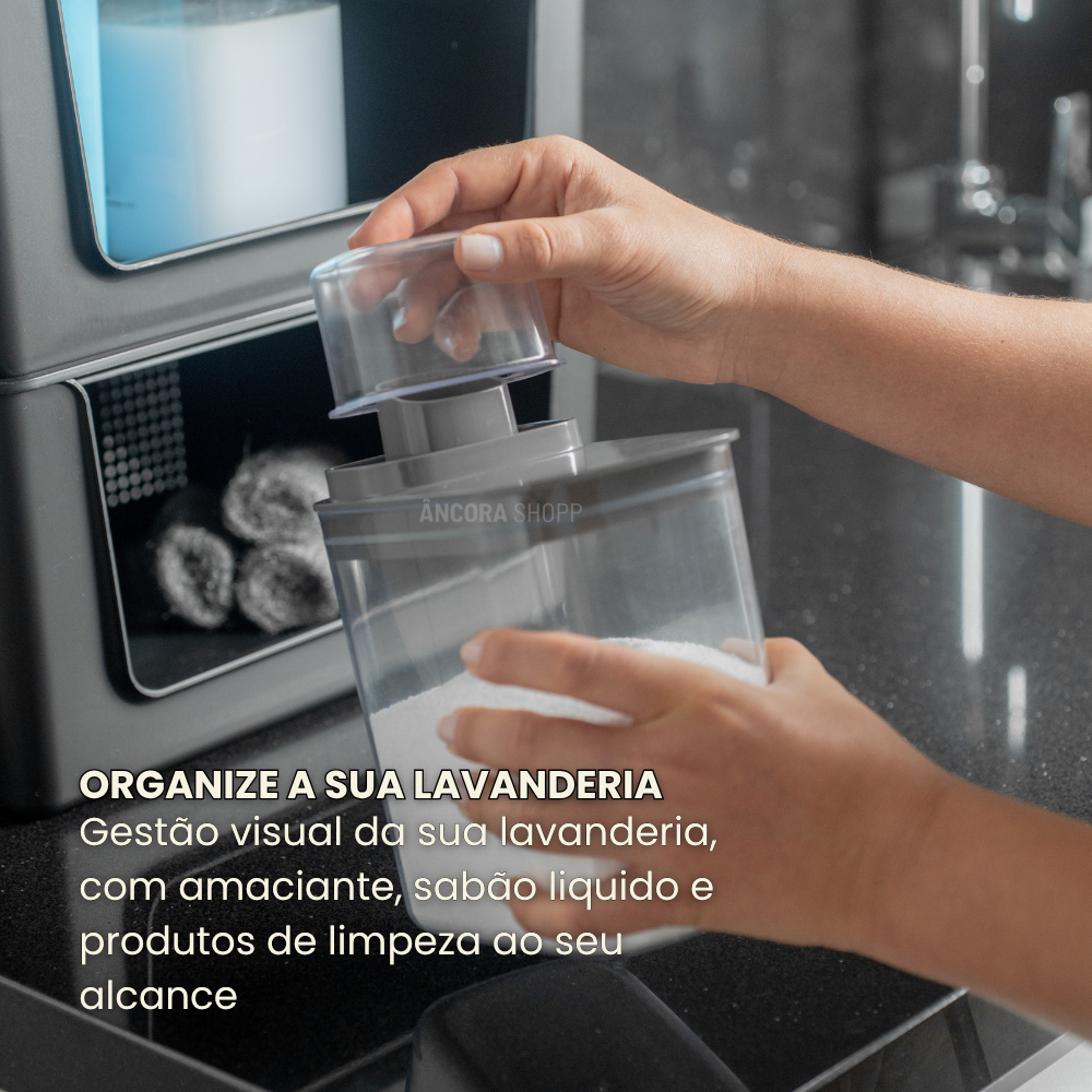 Kit Dispenser Organizador de Lavanderia 1,5L + 2,3L Acrílico Amaciante Sabão em Pó Sabonete Liquido