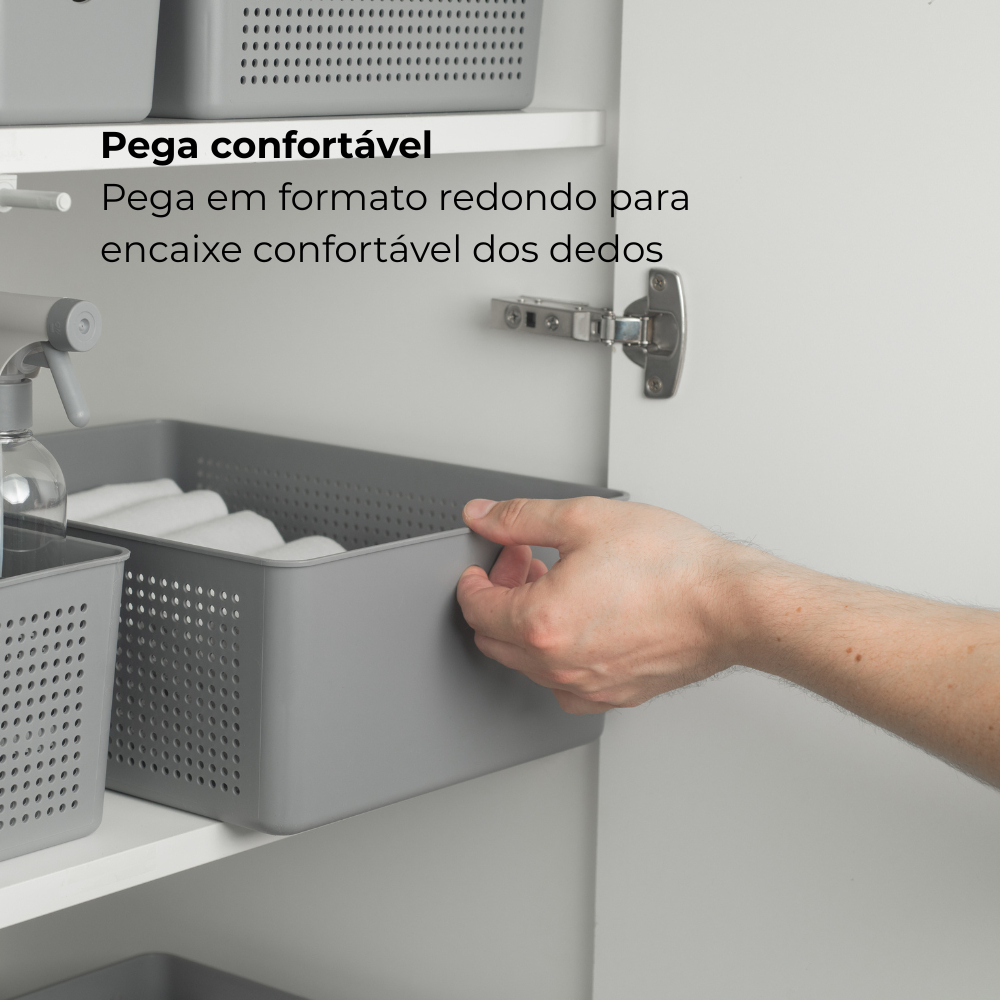 Cesto Organizador 12 Litros 34 X 27 Caixa de Organização Lavanderia Cozinha e Banheiro Flow Ou