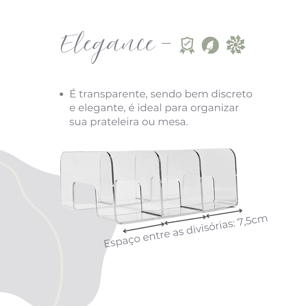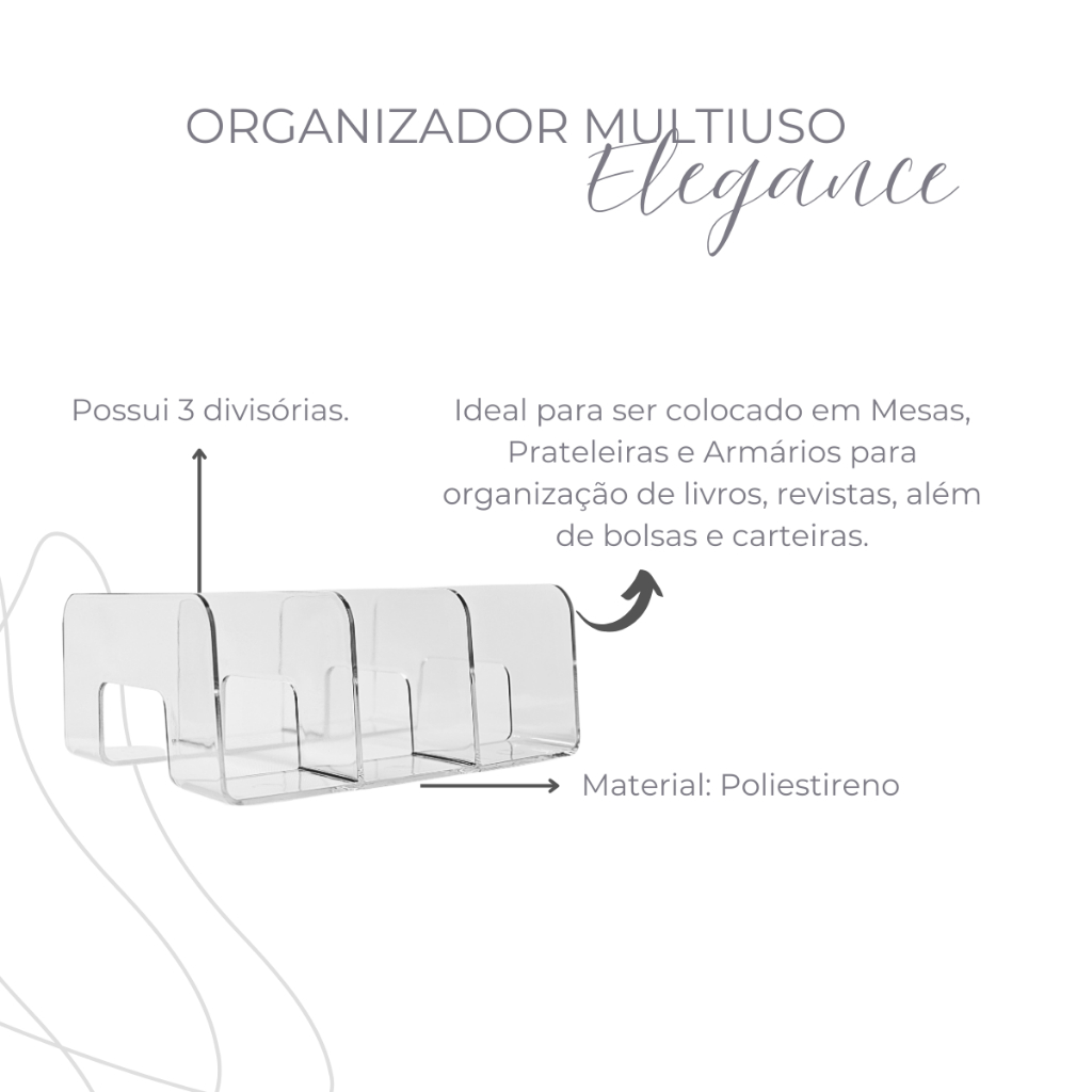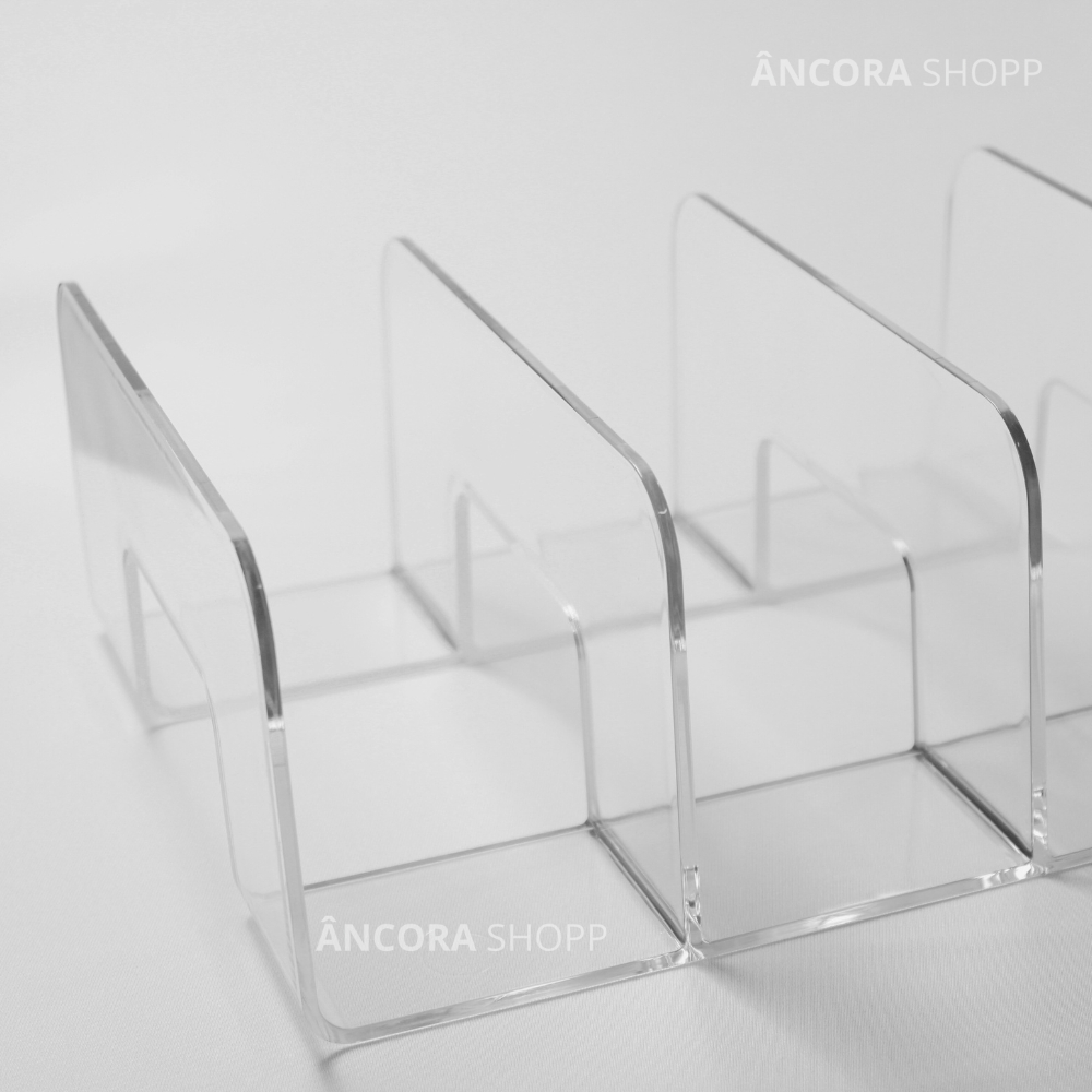 Organizador Multiuso Modular Para Livros Bolsas Guarda Roupa Acrílico com 3 Divisórias 24,5x20x10