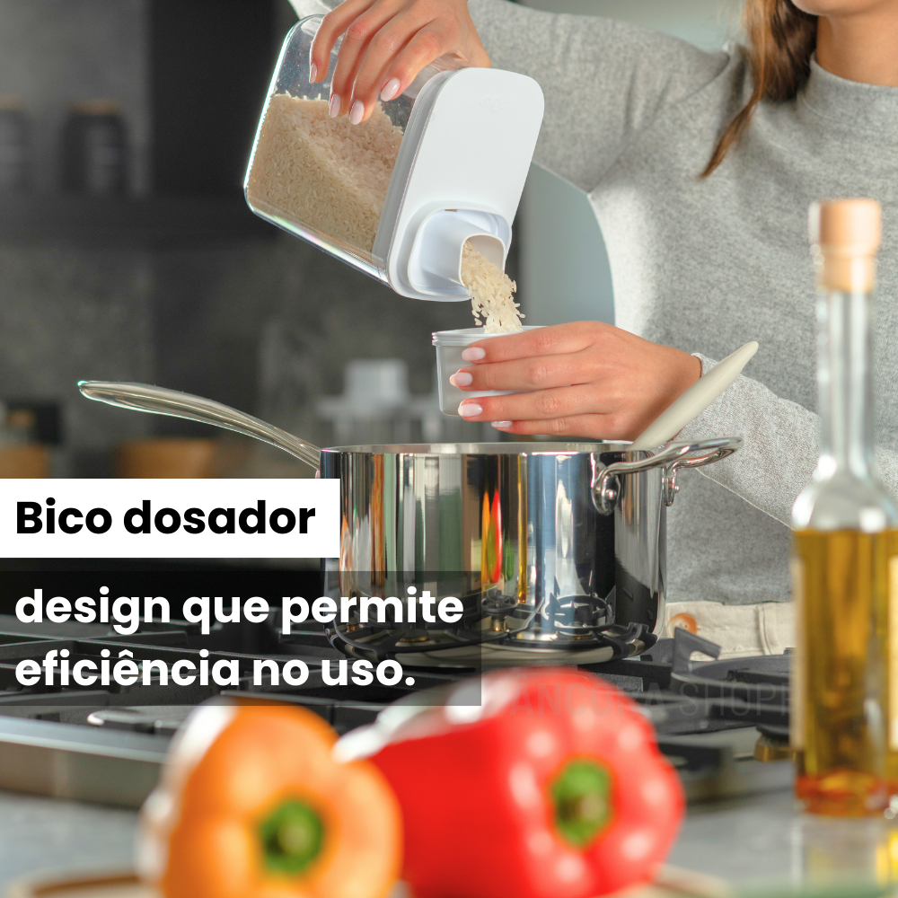 Pote Hermético Dispenser 1,5 E 2,3L Organizador de Tempero Cereais Grãos com Vedação e Copo Dosador