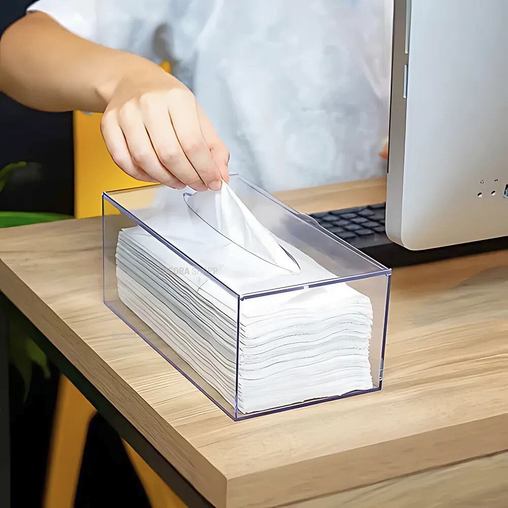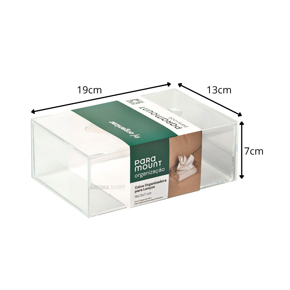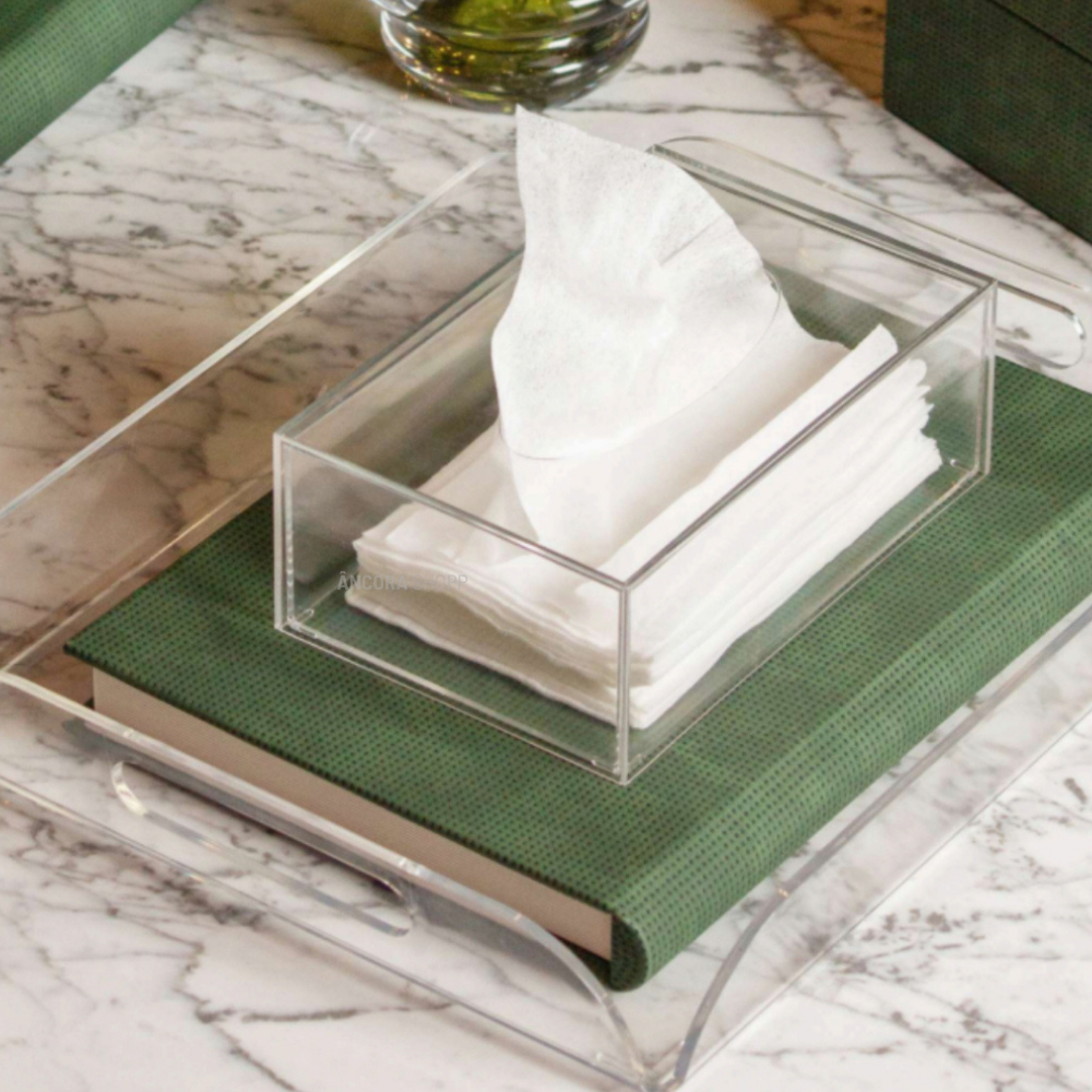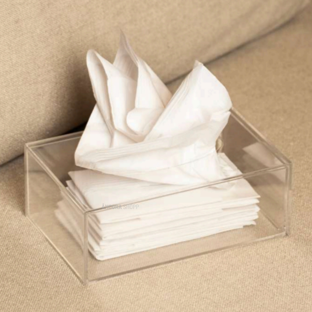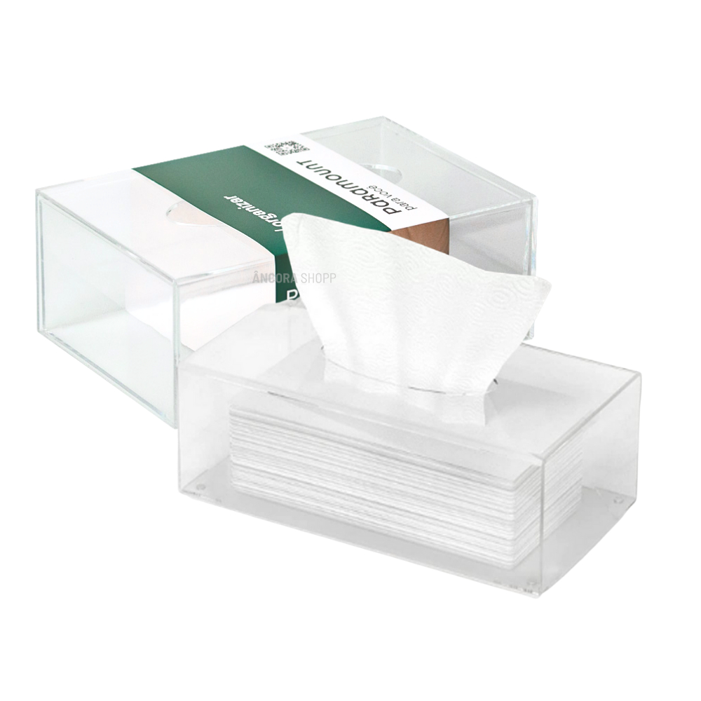 Caixa Porta Lenços Máscaras e Papel Toalha de Mesa Acrílico Cristal 19cm x 13cm
