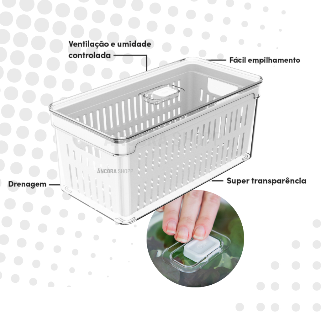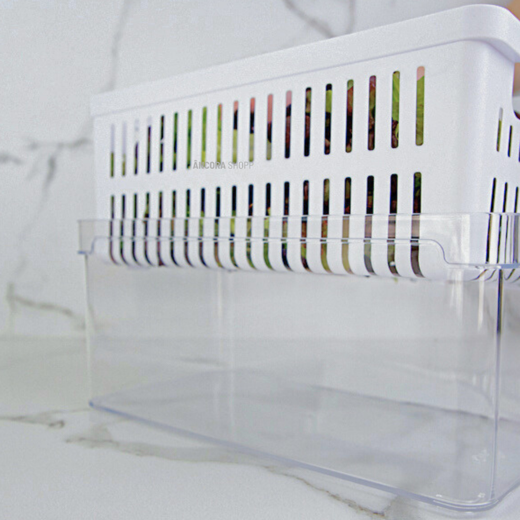 Organizador de Geladeira 5L com Cesto e Tampa Porta Frutas Legumes Vegetais Clear Fresh Ou