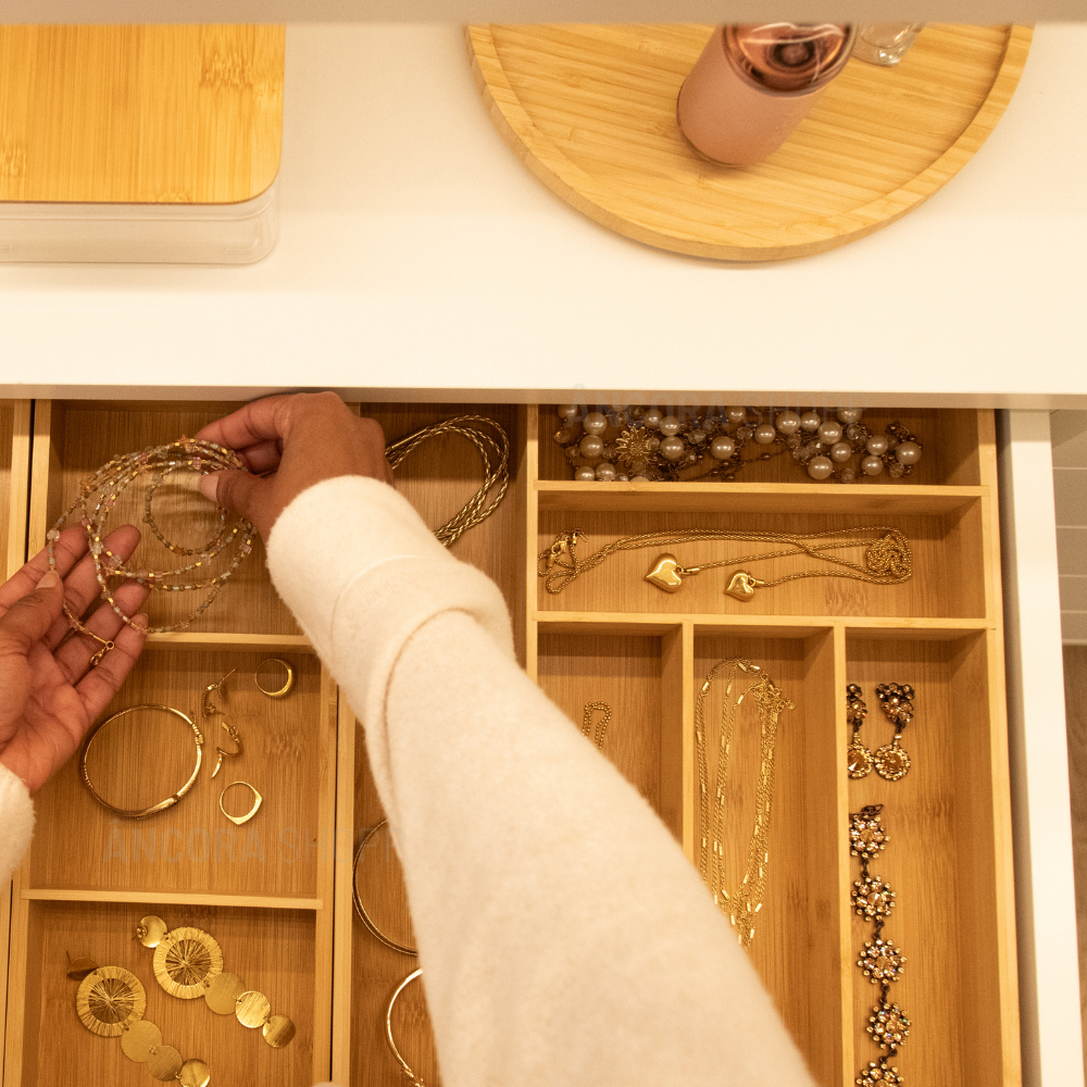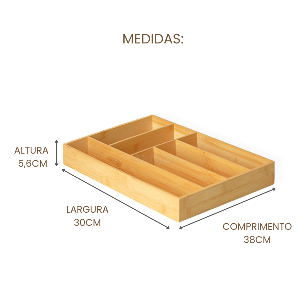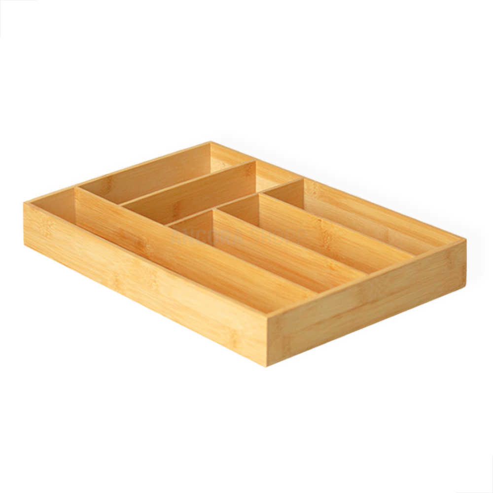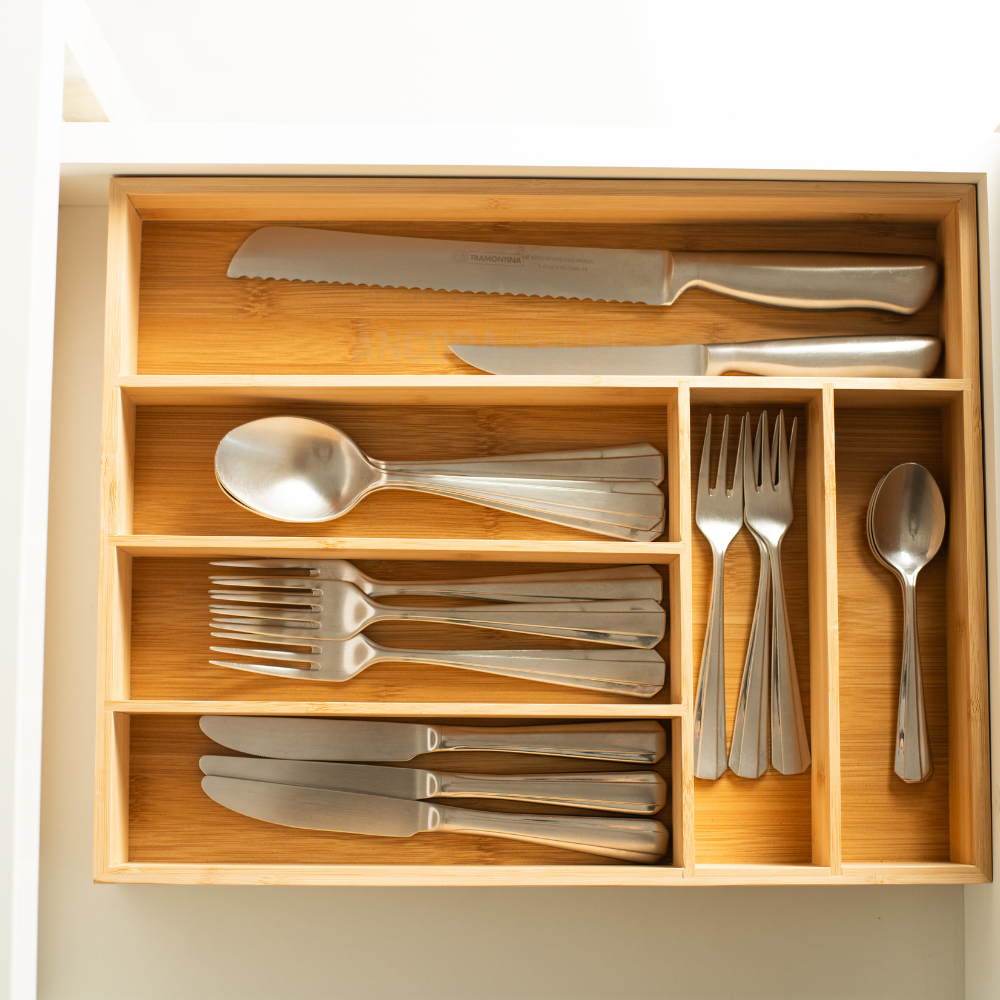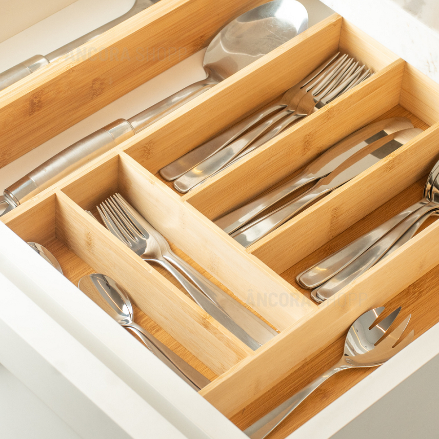 Organizador de Gaveta Porta Talher Separador de Talheres de Cozinha 6 Divisórias Bambu 30cm x 38cm