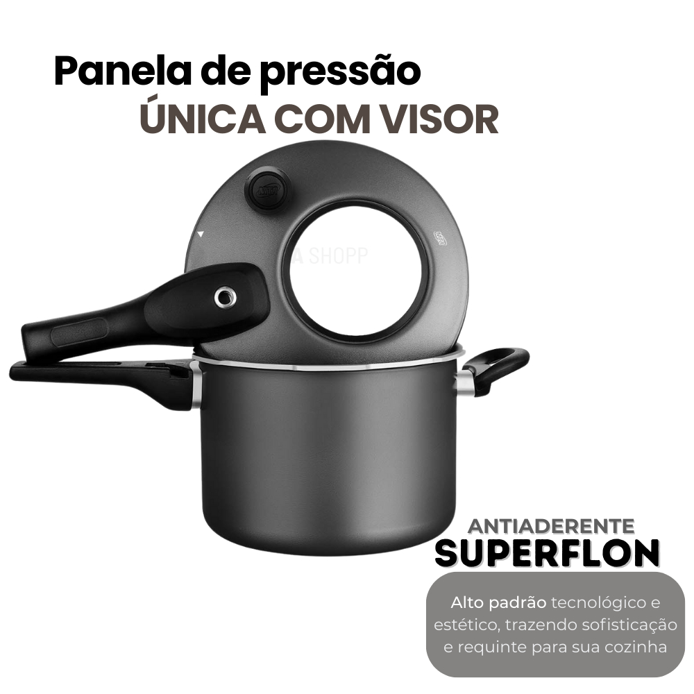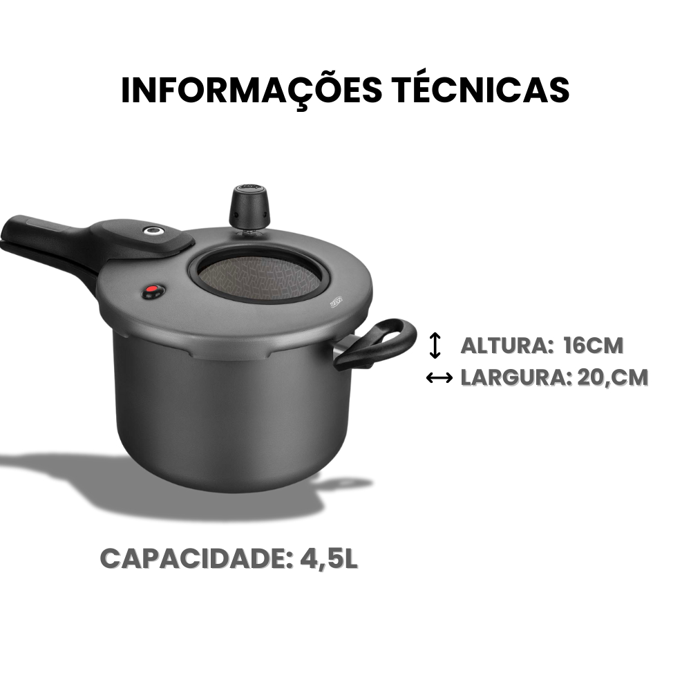 Panela de Pressão com Fechamento Externo 4,5L Com Visor de Vidro Antiaderente Preto Grafite MTA