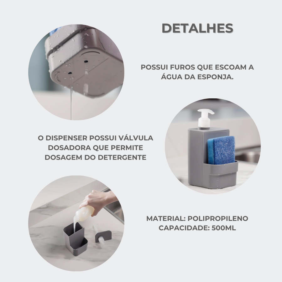 Porta Detergente Pia Sabão Sabonete Liquido Rodo e Esponja Bucha 500ml