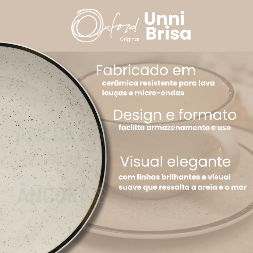 Aparelho Jogo de Jantar 24 Pçs Oxford Jogo de Pratos Xícaras Sobremesa Bowls Pestiqueira Unni Brisa