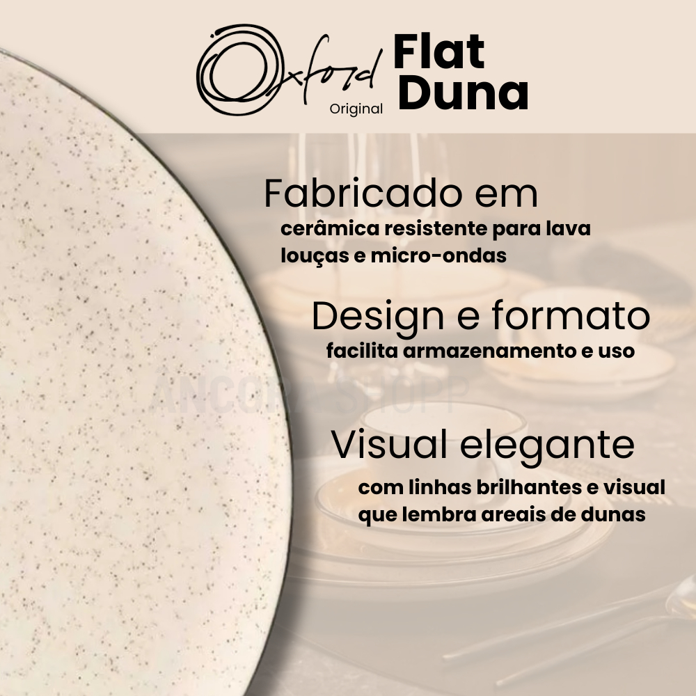 Jogo 40 Pçs Aparelho de Jantar e Chá Oxford Jogo de Pratos e Xícaras Flat Duna Cerâmica Porcelanas