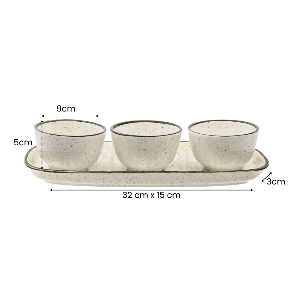 Jogo de Petisqueira 3 Bowls com Bandeja em Cerâmica Retangular Para Servir Domus Brisa Oxford
