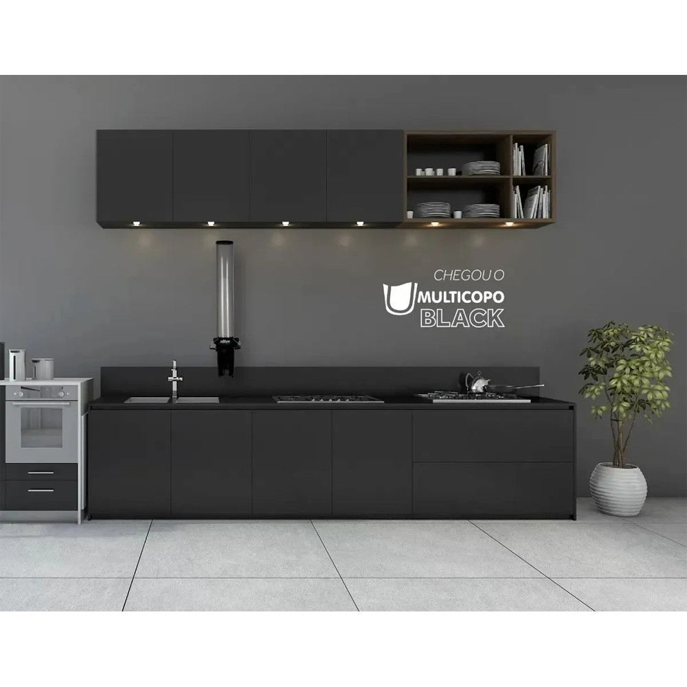 Dispenser Poupador Porta Copos Agua 150ml a 200ml Automático Preto Nobre com Kit de Montagem