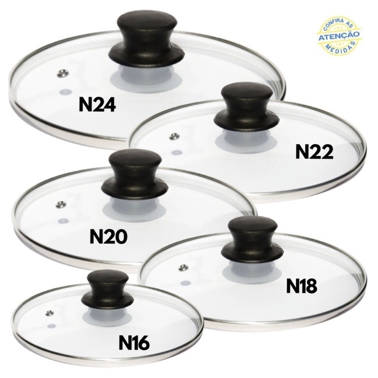 Jogo/Conjunto ou Avulsas de Tampas de vidro temperado n. 16 18 20 22 24, ou 26,28 e 30 Panela, caldeirão tacho