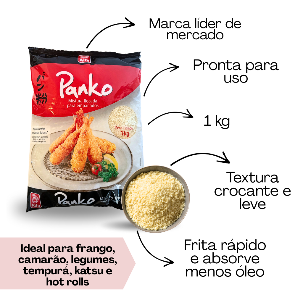Farinha Panko Flocada Alfa 1kg Para Empanados Hot Rolls e Temakis Hot Categoria Premium