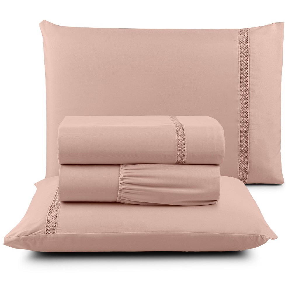 Jogo de Lençol King 4 Peças Percal 300 Fios Ponto Infinito