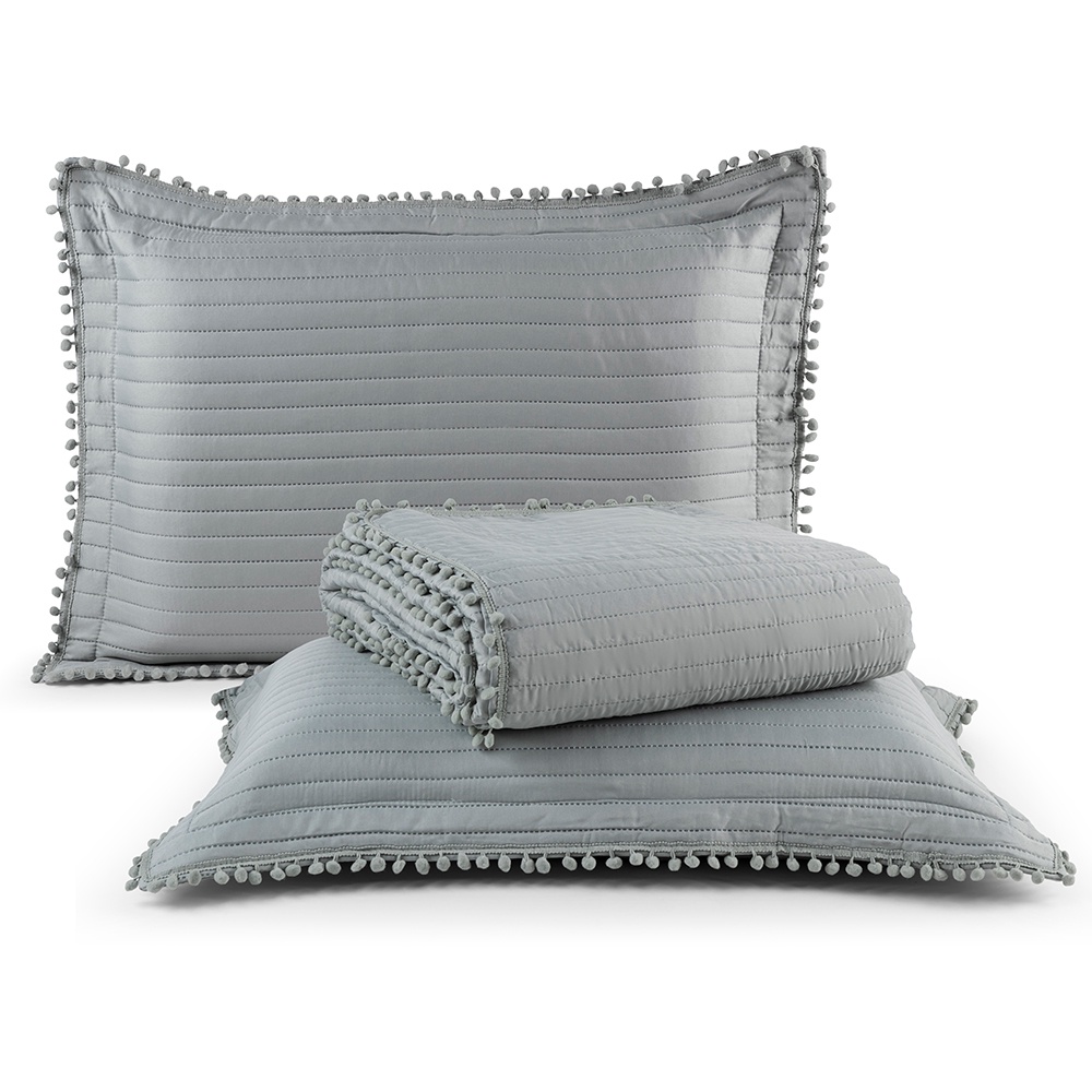 Kit Cobre Leito Colcha Queen 3 Peças Matelado PomPom 300 Fios Com Porta Travesseiro