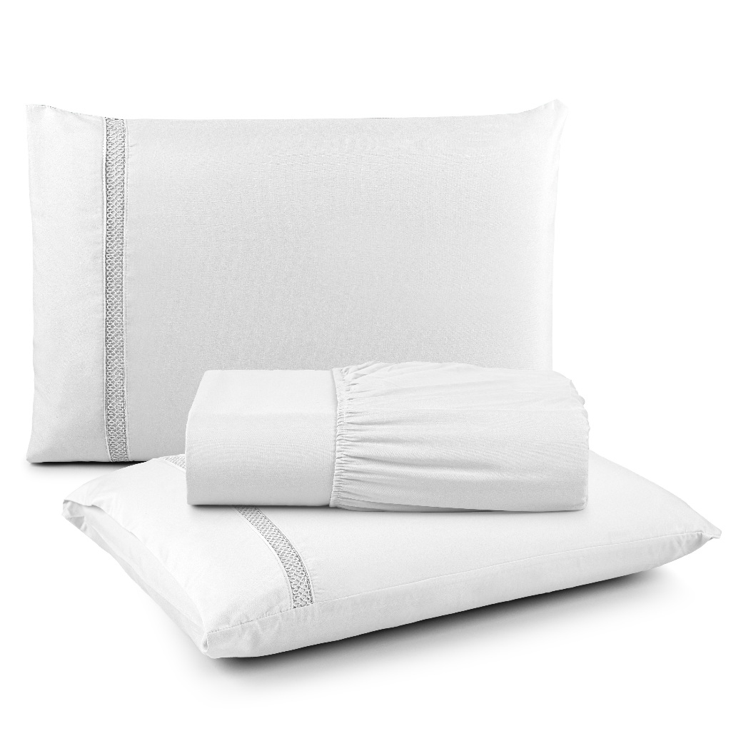 Jogo de Lençol King 3 Peças Percal 300 Fios Ponto Infinito