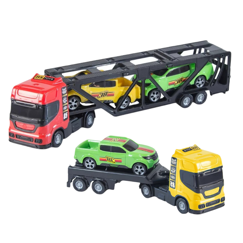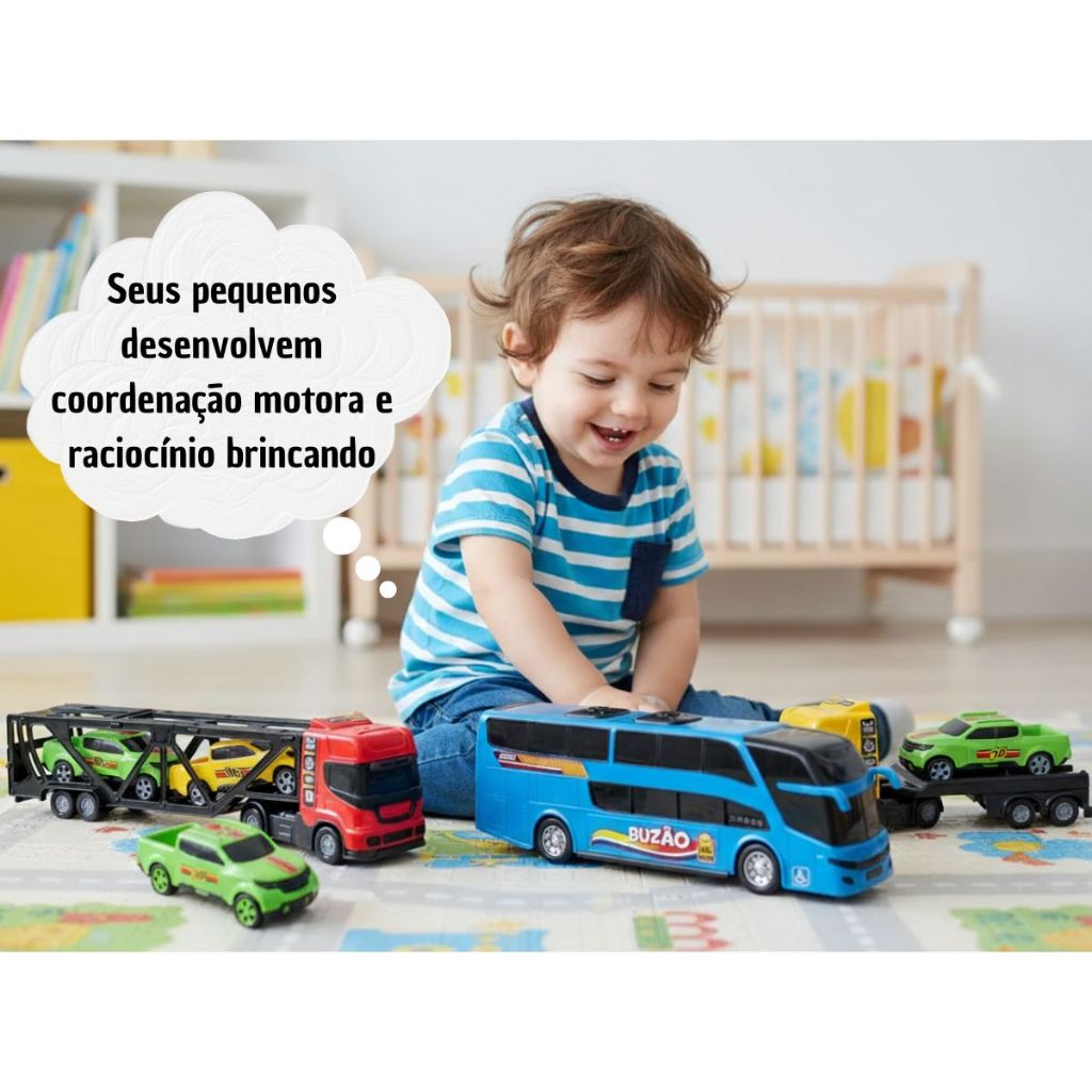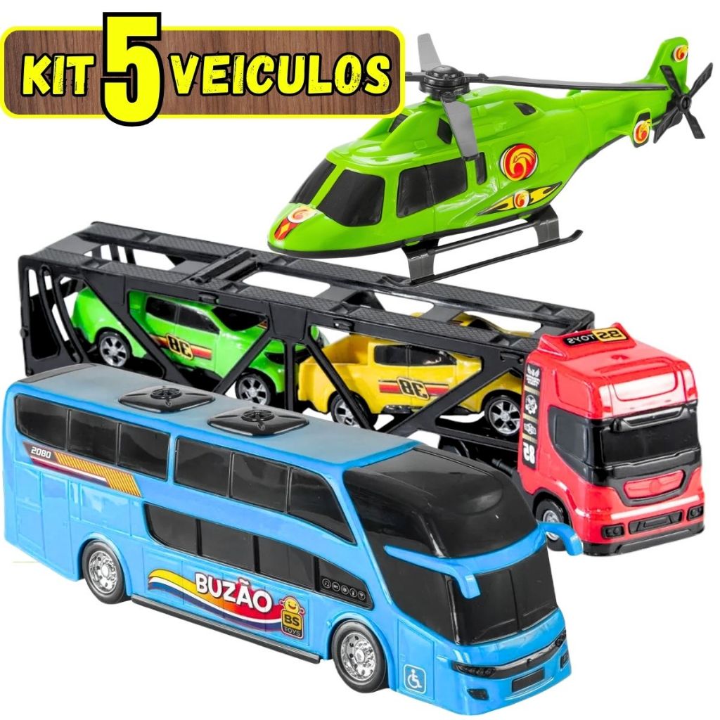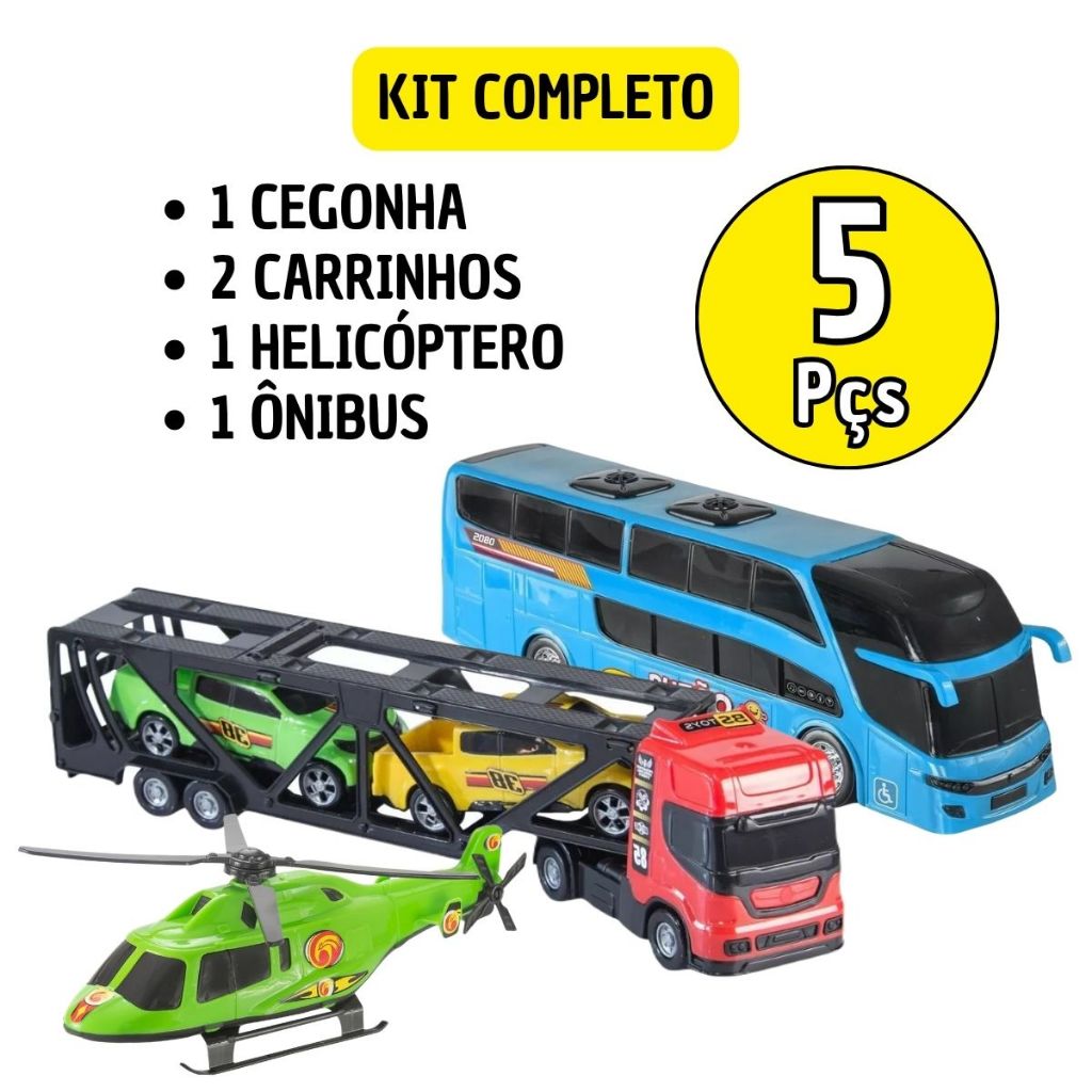 Caminhão Brinquedo Infantil Cegonha + Ônibus + Helicóptero