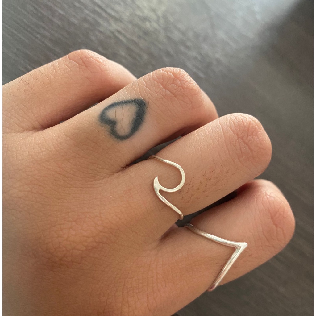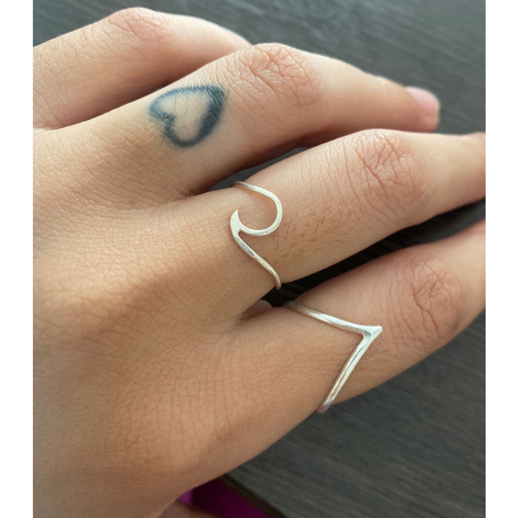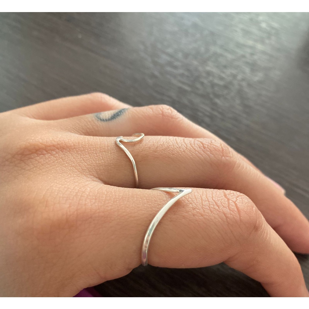 Kit Anel de Prata 925 Onda e V