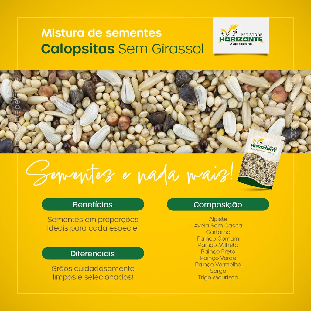 Ração Light Calopsita Sem Girassol 1kg Mistura Sementes Alpiste Painço para Agapornis Periquito
