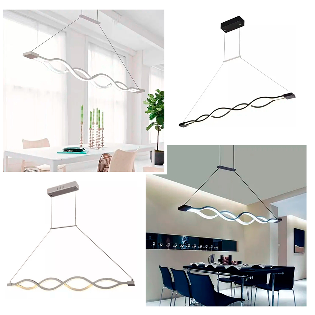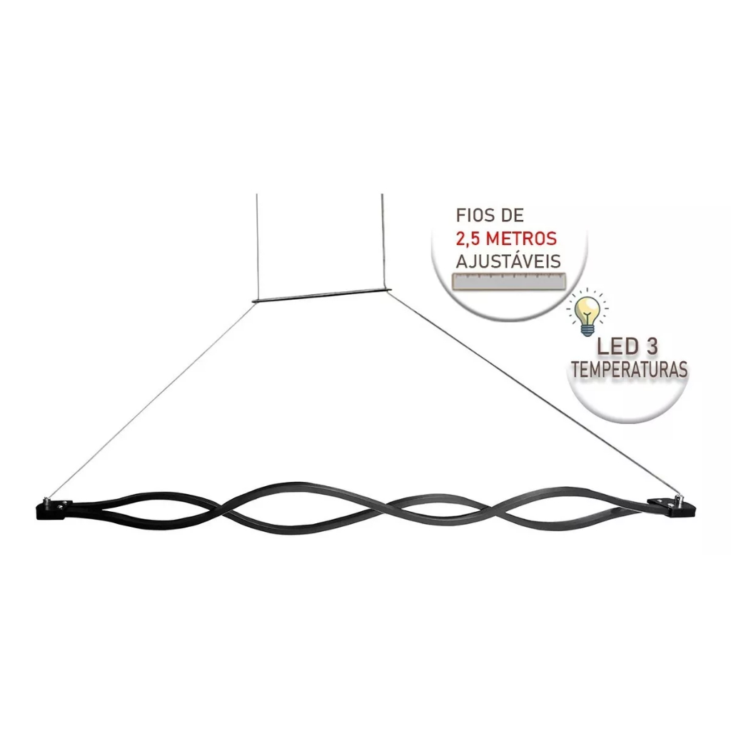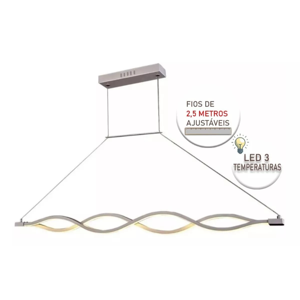 Lustre Led Pendente 3 Cores em 1 Retangular Ondulado Lindo Moderno Bivolt Fio longo Ajustavel