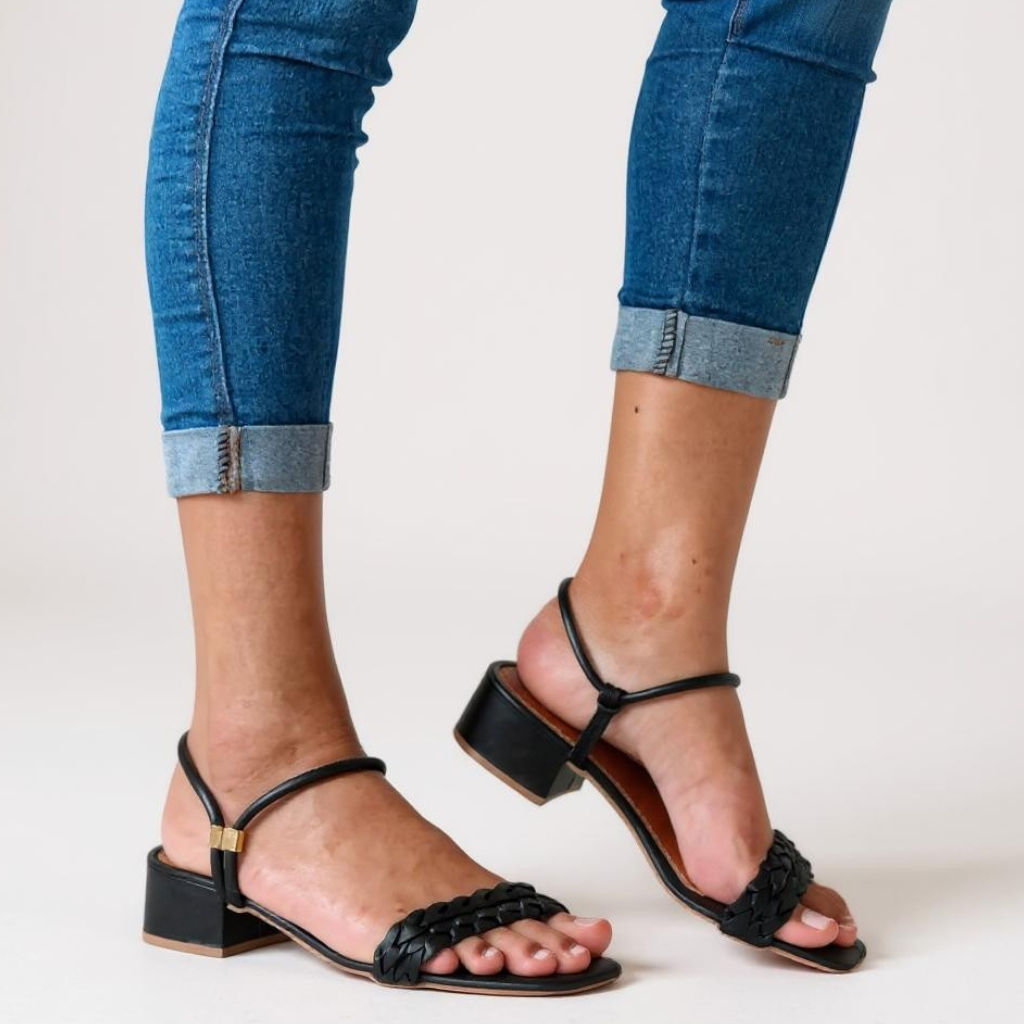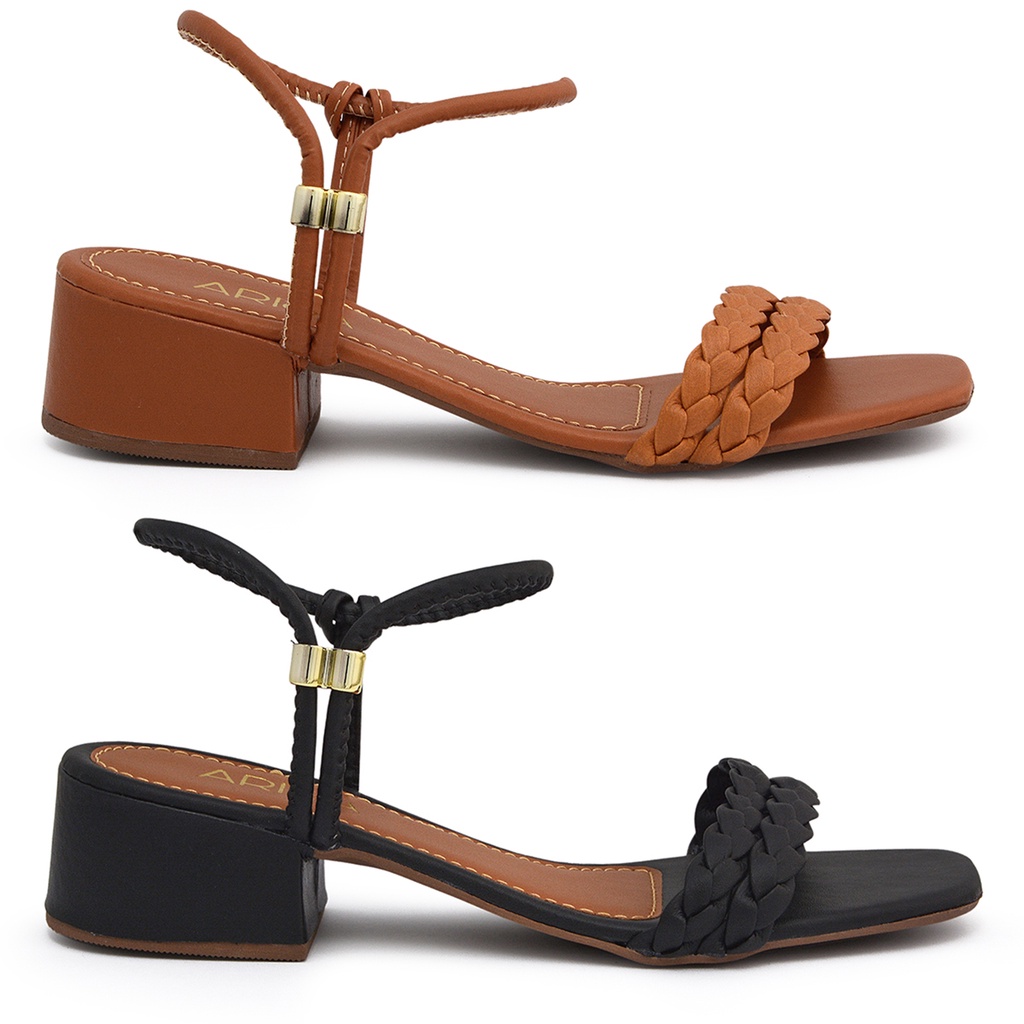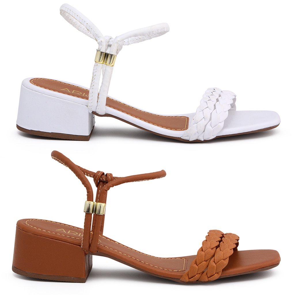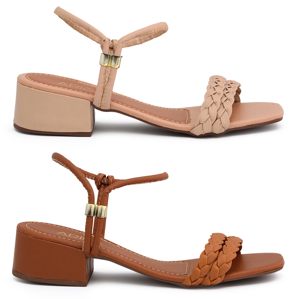 Kit 2 Sandálias De Salto Bloco Tira Transada Ajustável Formal Moderna Casual