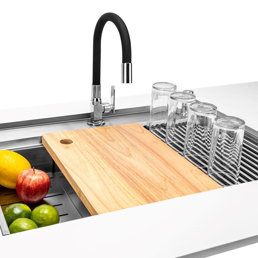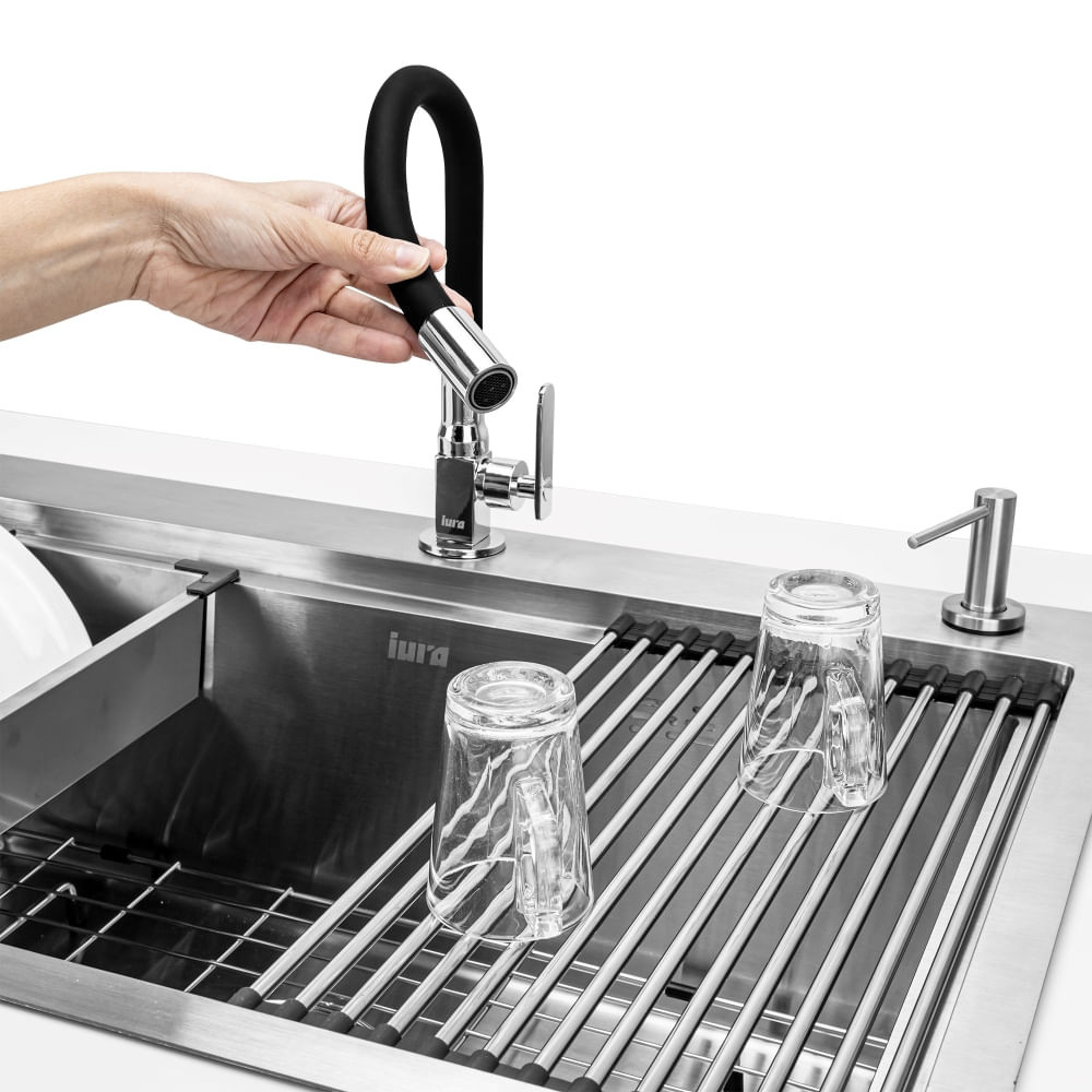 Torneira Cozinha De Mesa Bancada Flexível Iura Kalt Inox Cromada Preta