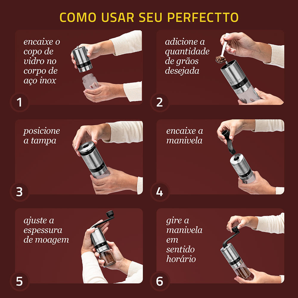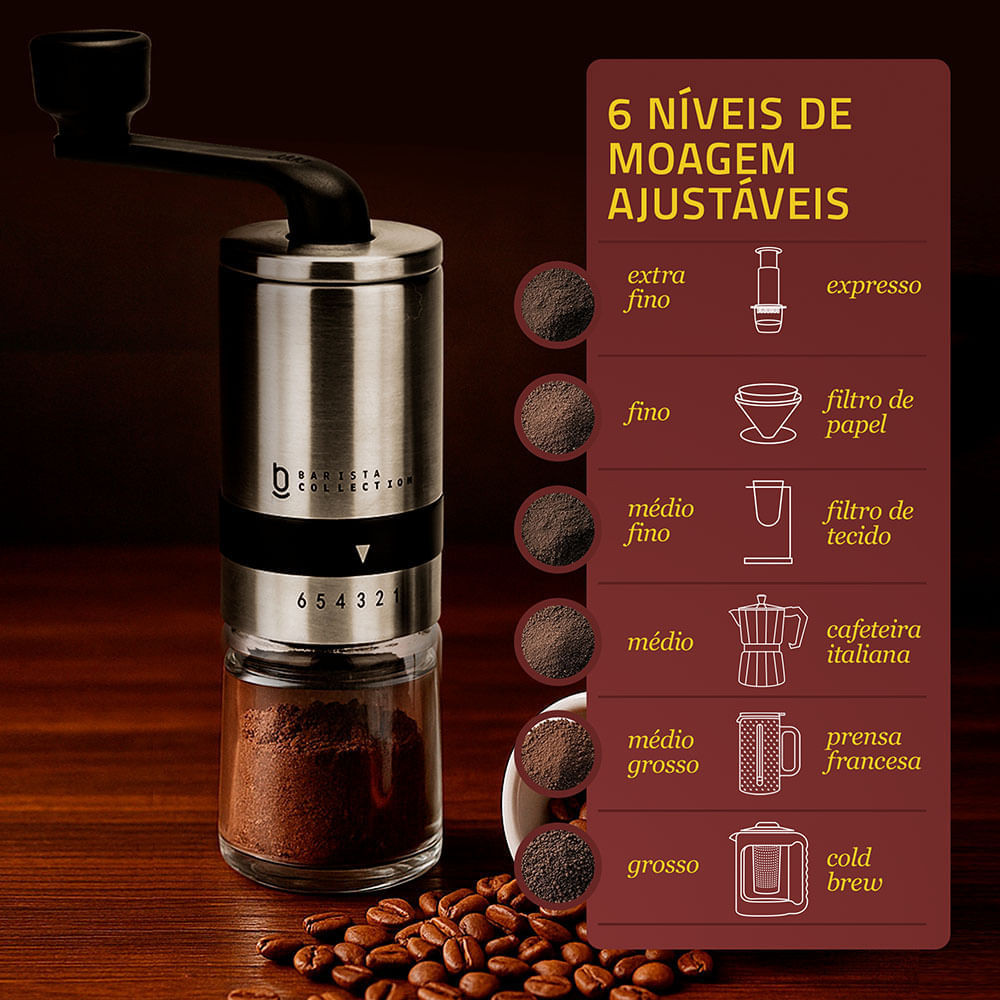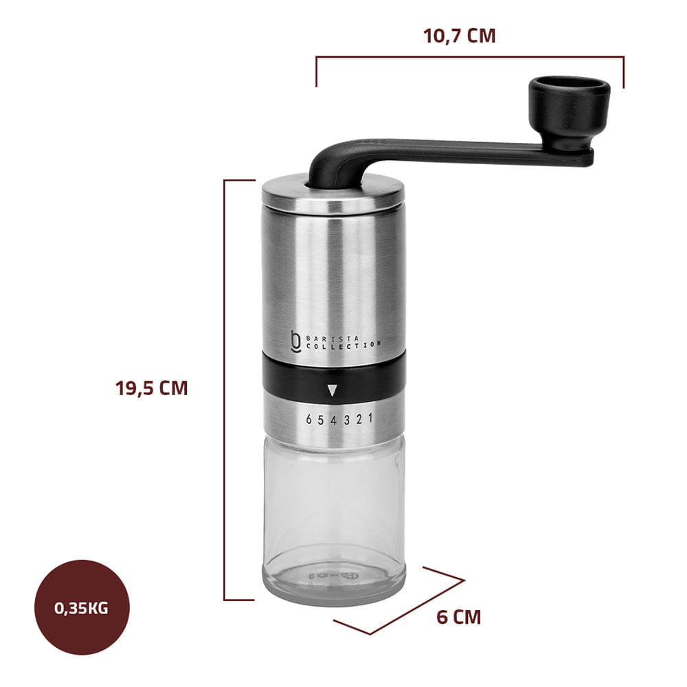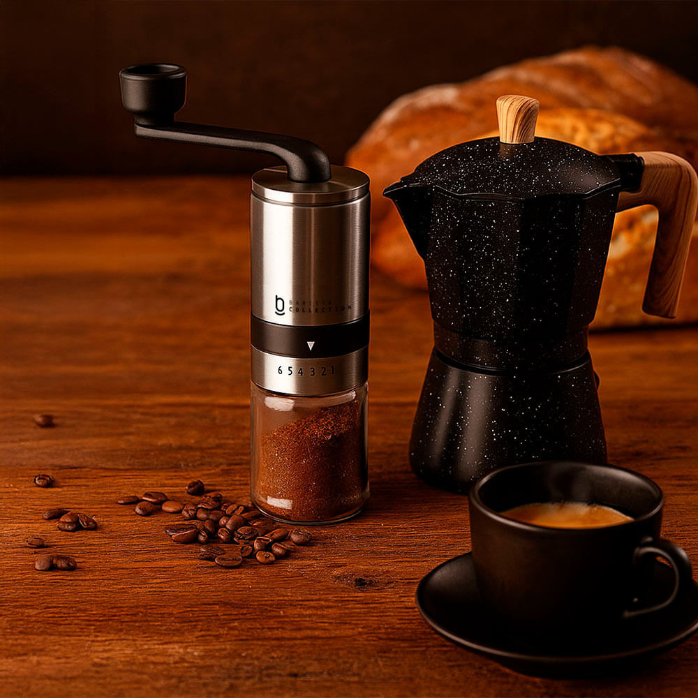 Moedor de Café Grãos Manual Cerâmica Biscuitt Perfectto Barista Collection Inox