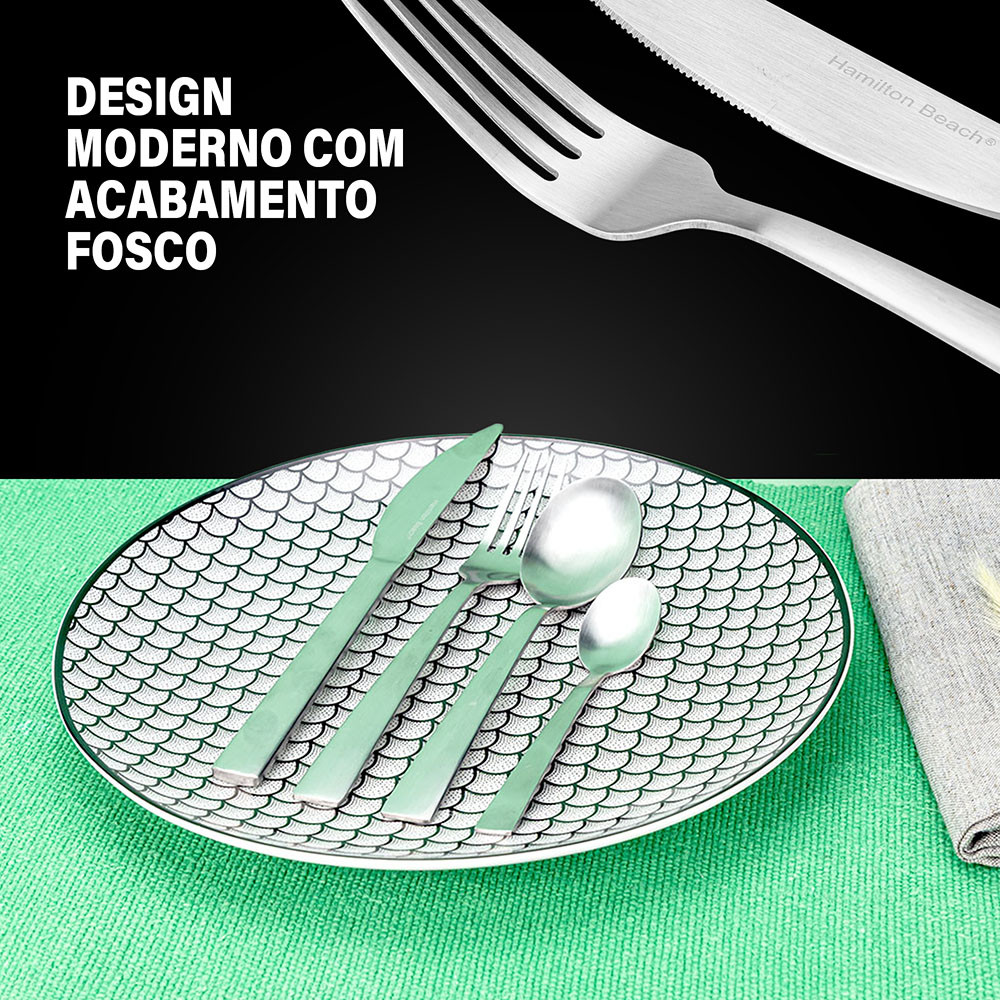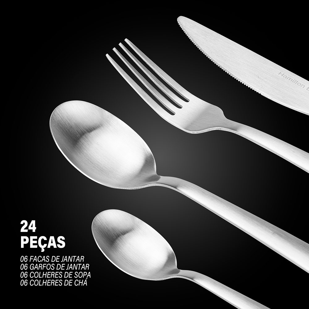 Faqueiro Jogo De Talheres Conjunto Inox Escovado 24 Peças Hamilton Beach Aspen