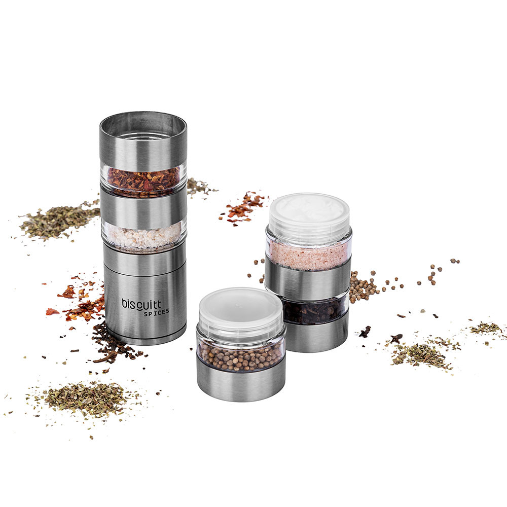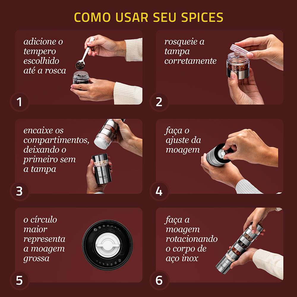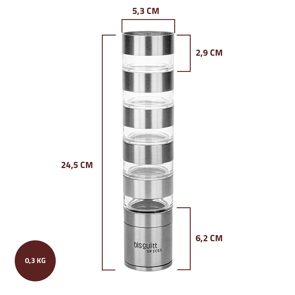 Moedor de Pimenta Temperos Sal e Grãos 5 em 1 Manual Cerâmica Biscuitt Spices Inox