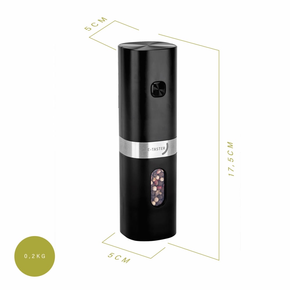 Moedor de Pimenta Sal e Temperos Elétrico Biscuitt E-Taster Cerâmico Com Led