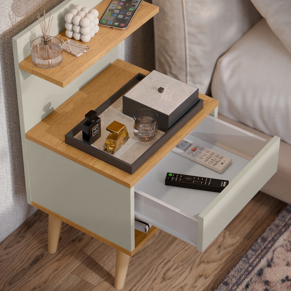 Mesa de Cabeceira Retro Sleep com 1 Gaveta com Prateleira - Cores