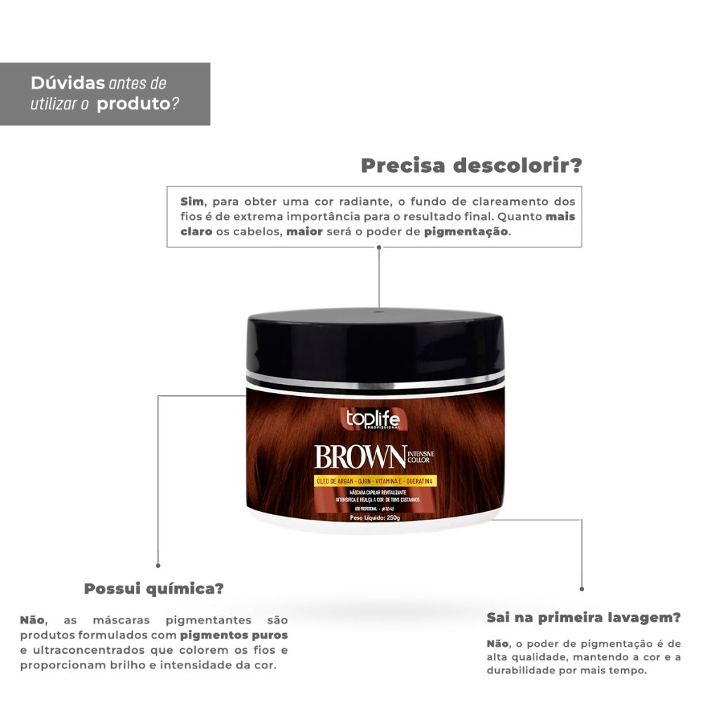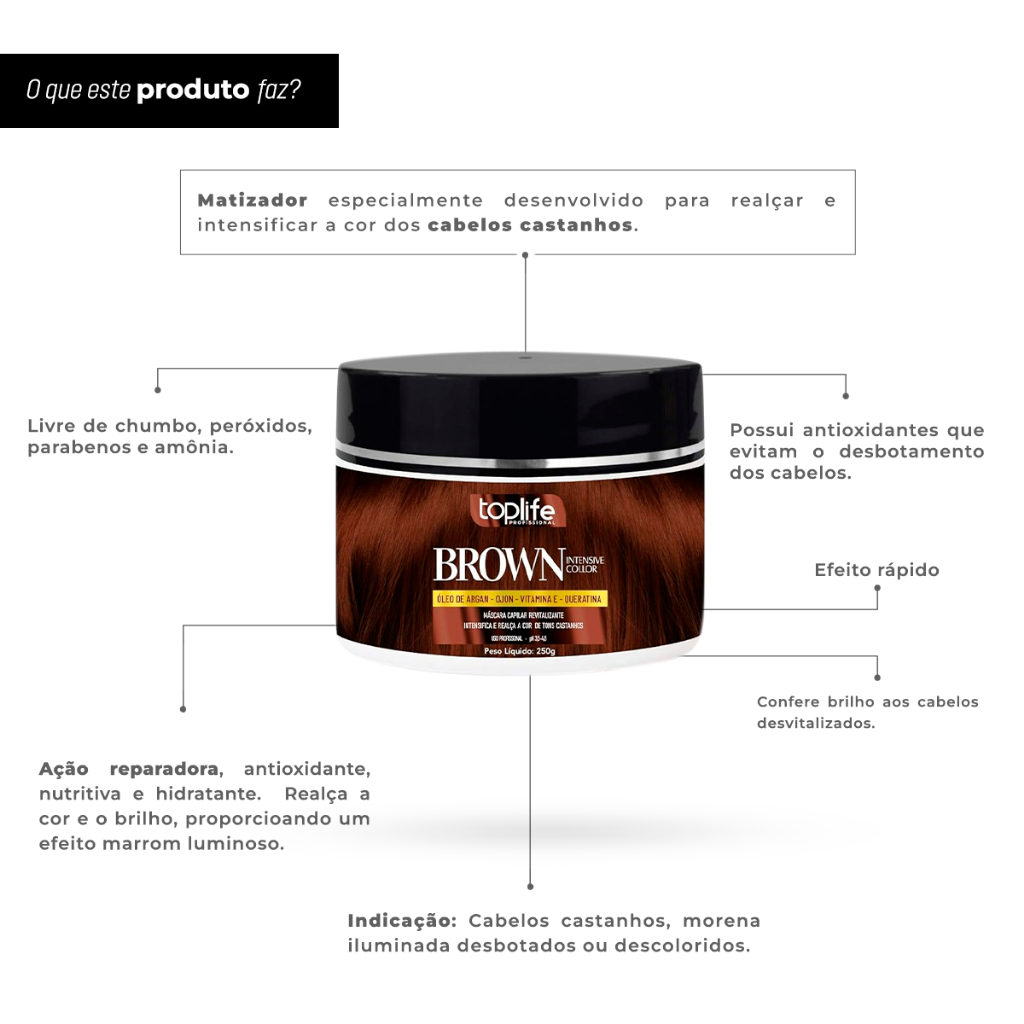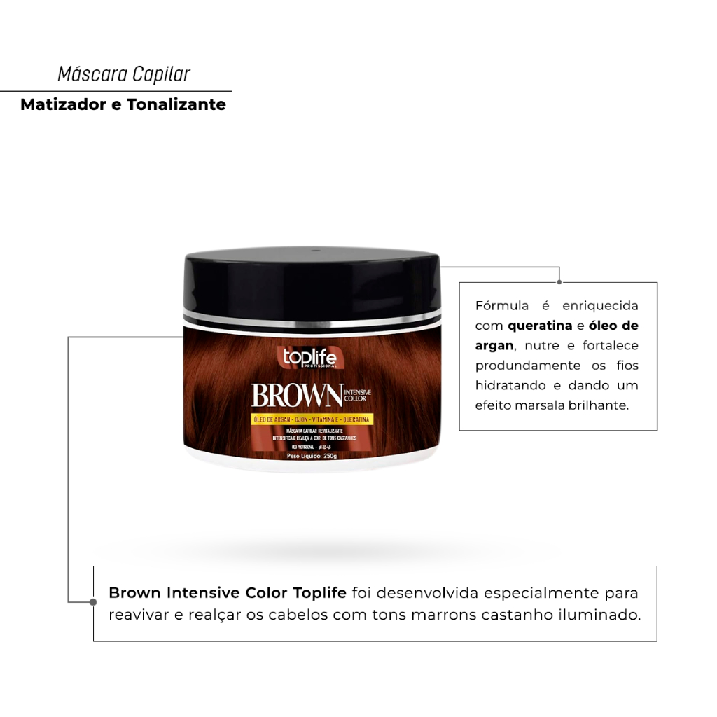 Máscara Tonalizante Marrom Castanho Toplife 250gr - Sem Amônia!!!