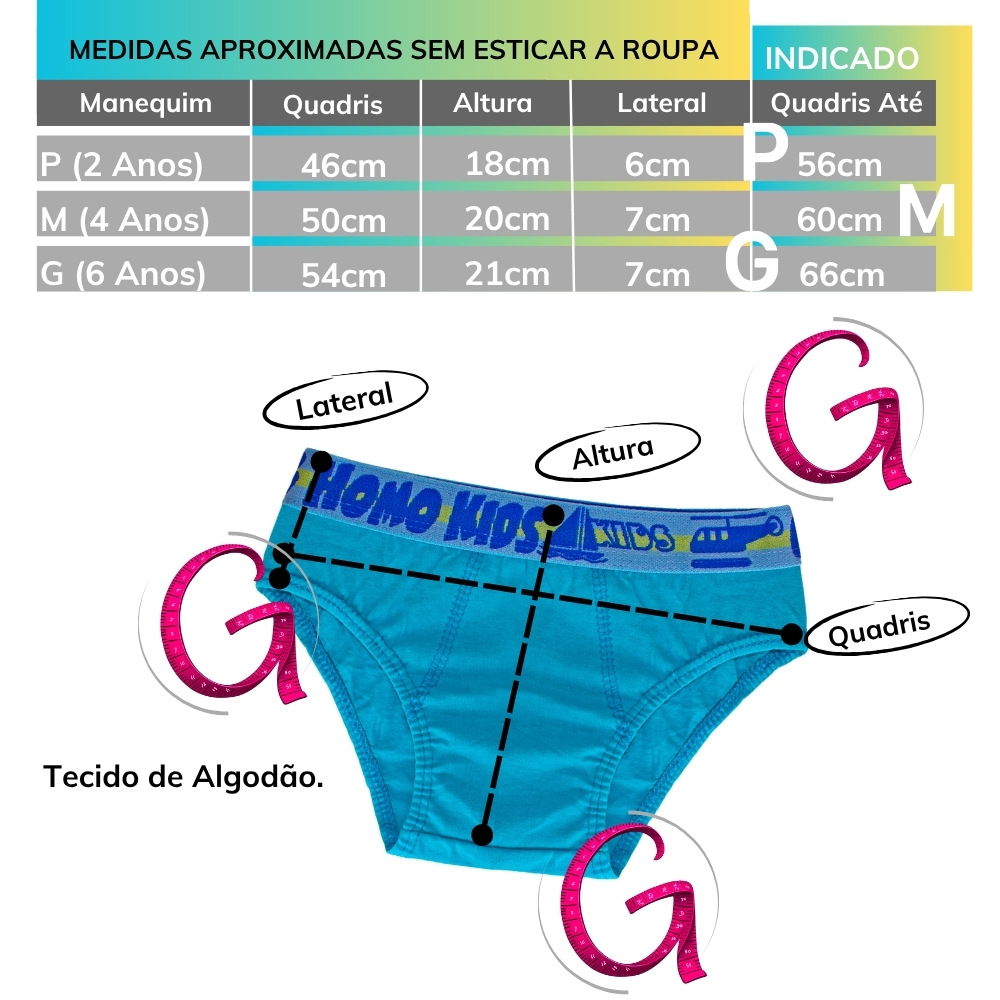 kit 5 cueca infantil de algodão slip com cós grosso aparente