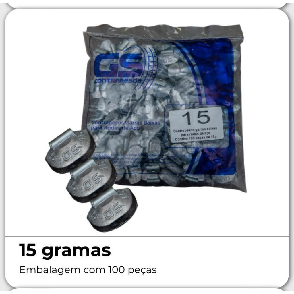 Chumbo para Balanceamento Contra Peso Garra Baixa 15 Gramas Pacote Com 100 unidades