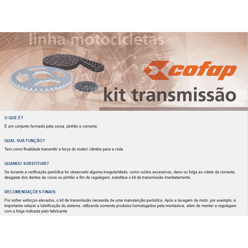 Kit Relação Tração Transmissão Suzuki Yes 125 2004 2005 2006 2007 2008 2009 2010 2011 2012 2013 2014 2015 Original Cofap