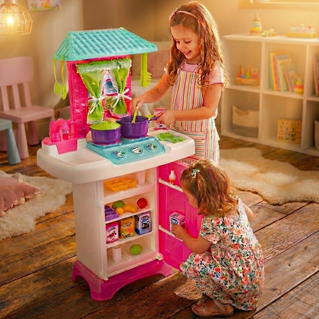 Cozinha Infantil Menina Completa Fogão Grande 74cm C/ Geladeira Acessórios Lançamento