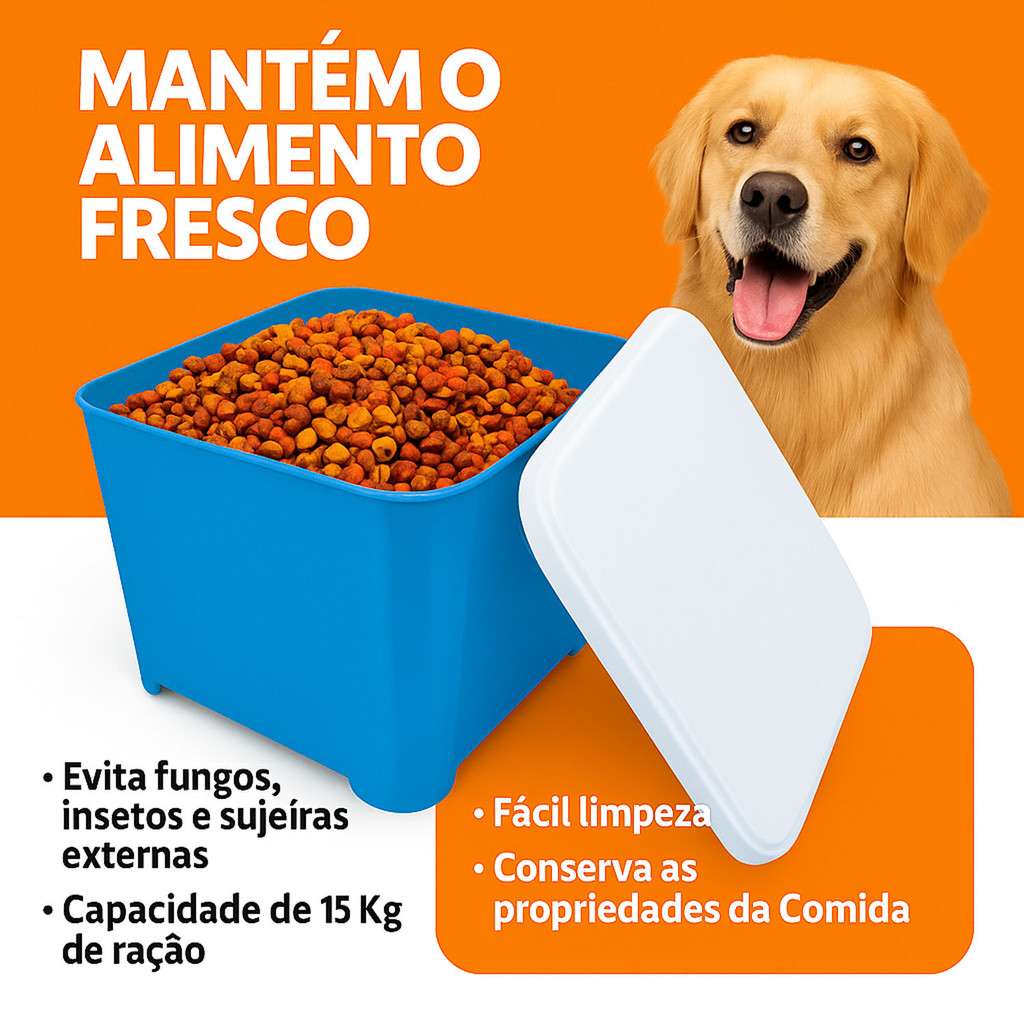 Porta Racao Container 15kg Comida Cachorro Gato Pote Azul