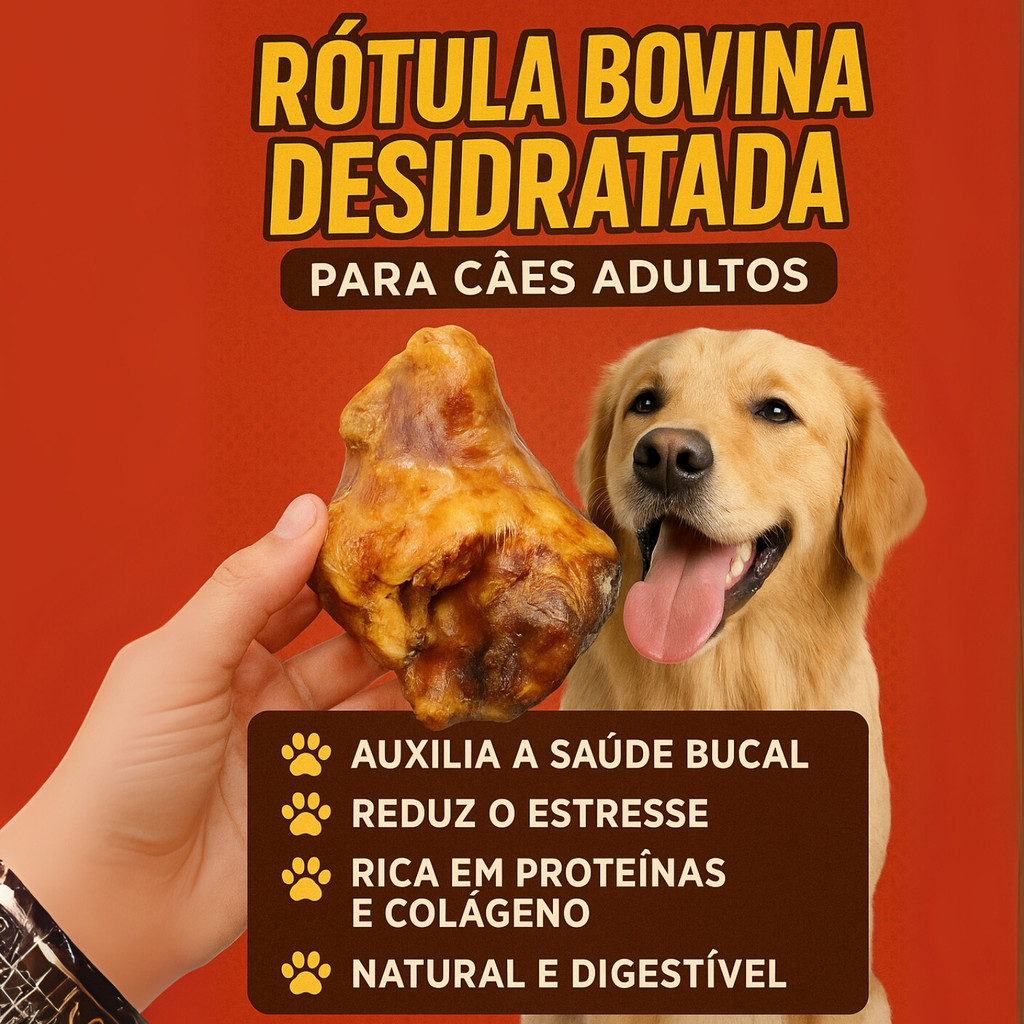 Kit 3 Rotula Bovina Desidratada 100% Natural Osso Cachorro