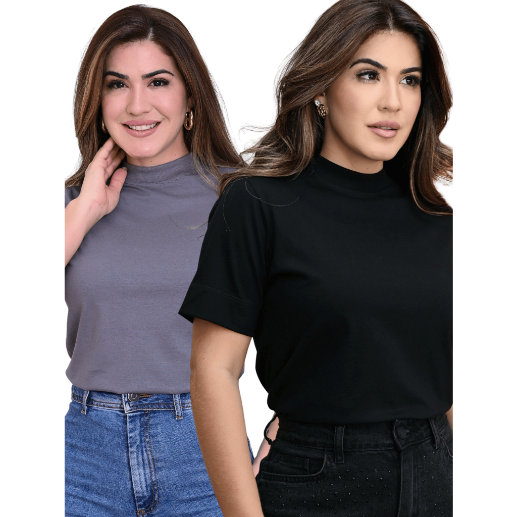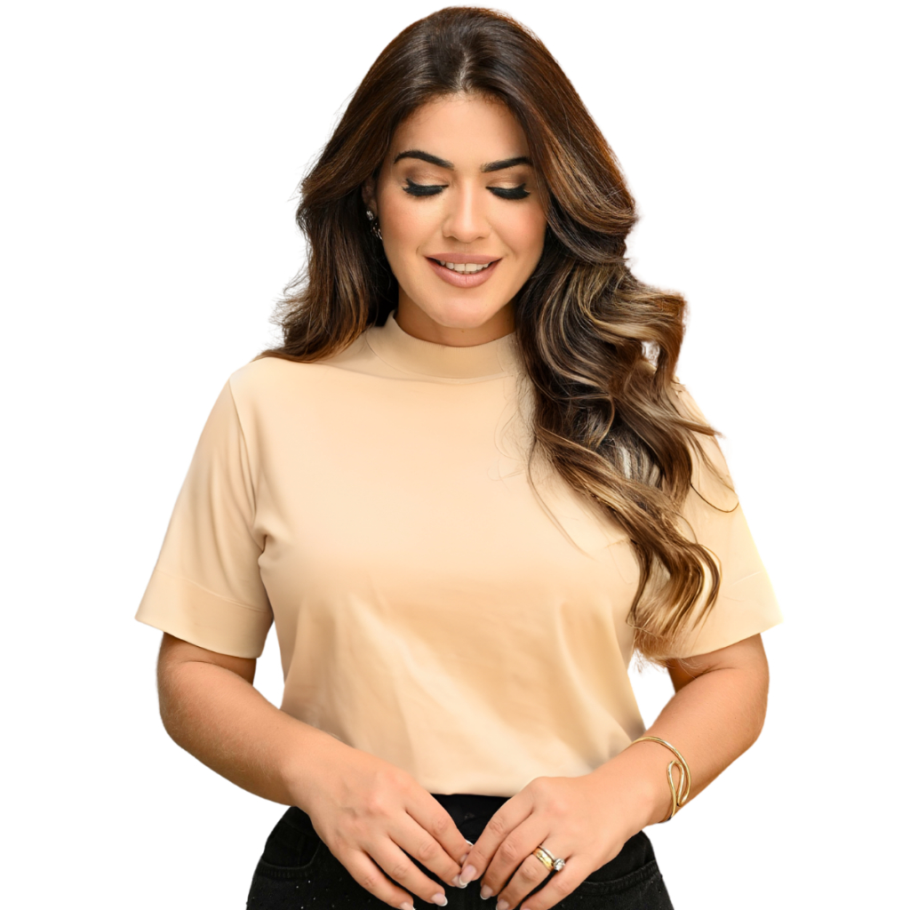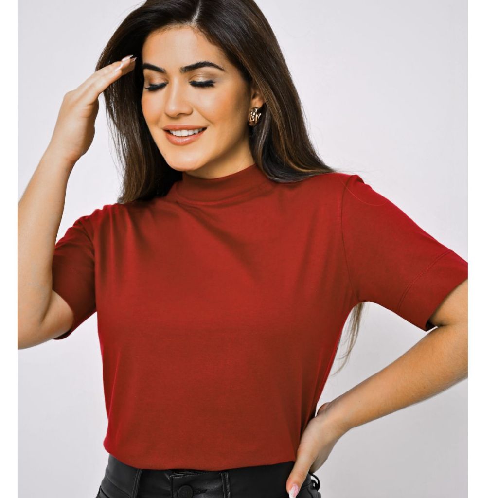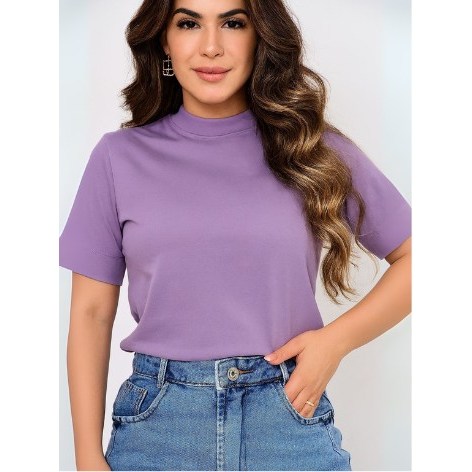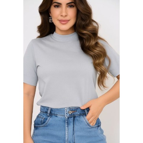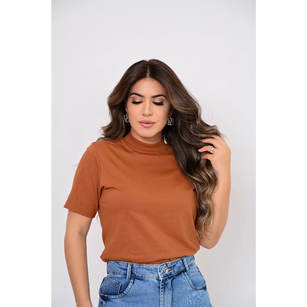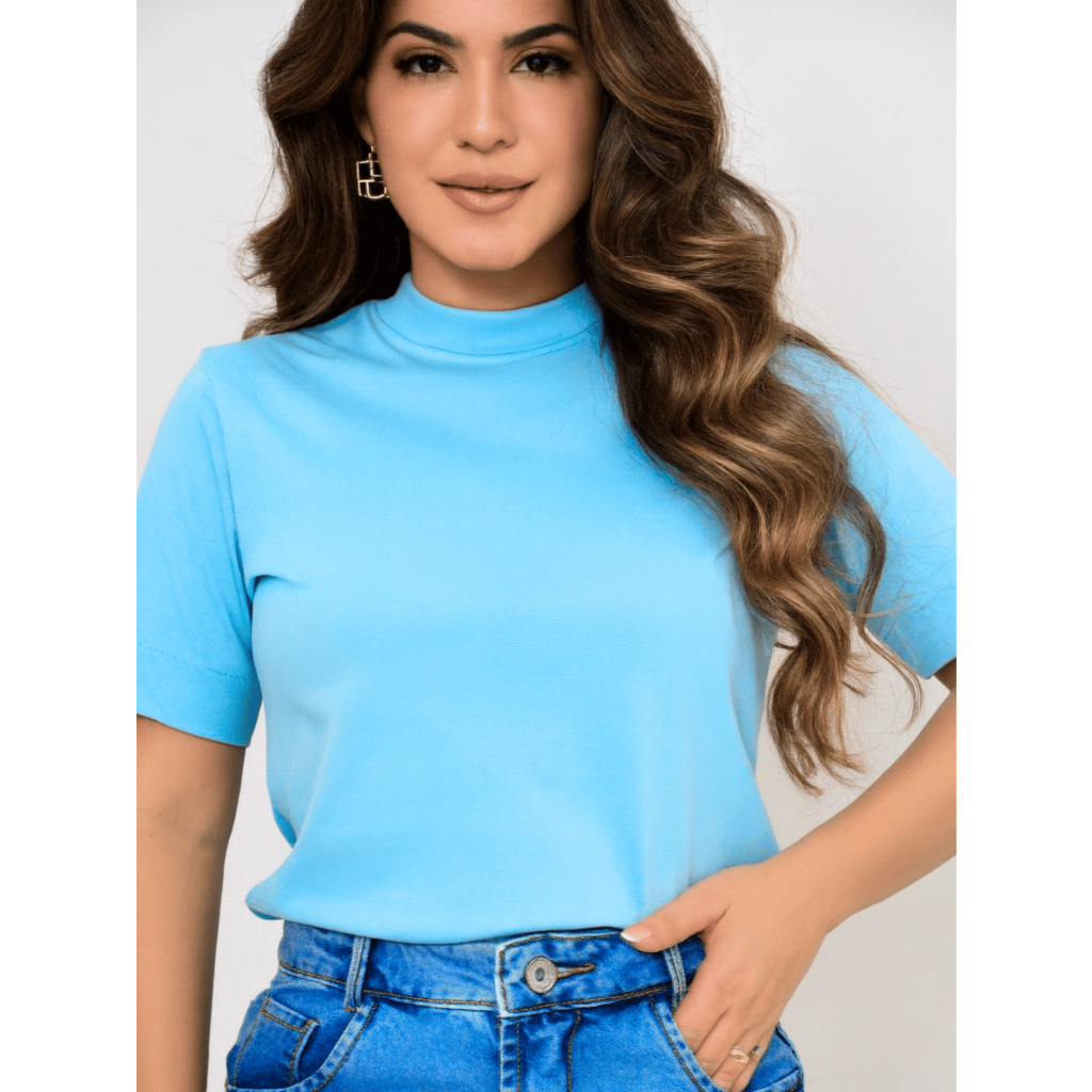 BLUSA GOLA ALTA FEMININA 100% ALGODÃO MANGA CURTA