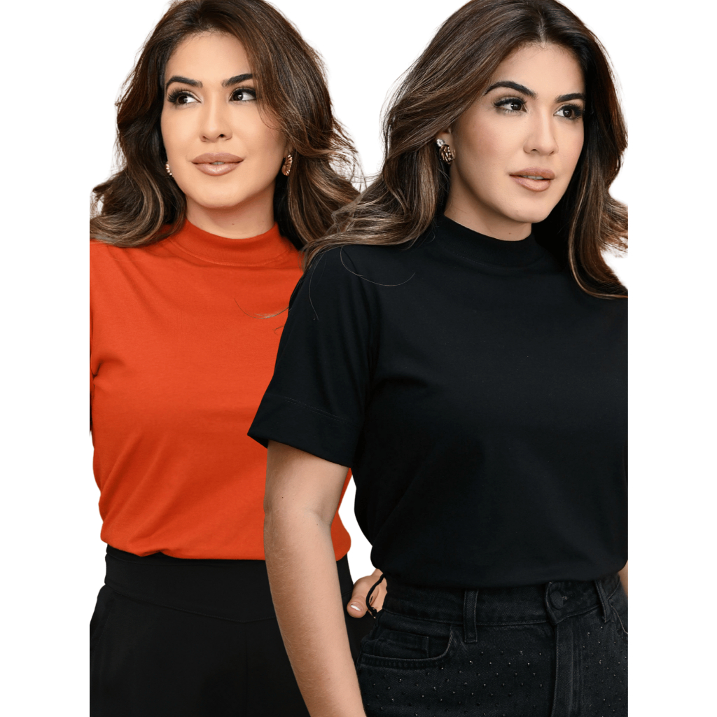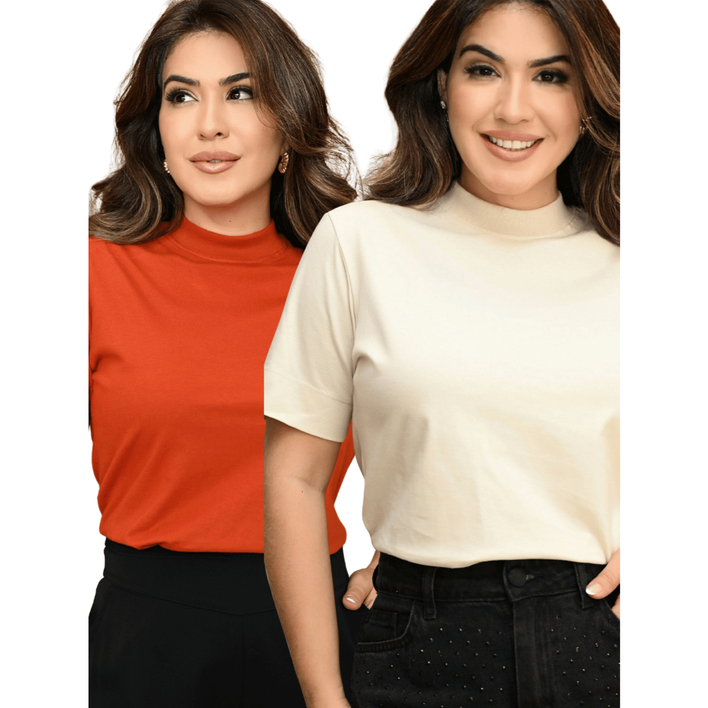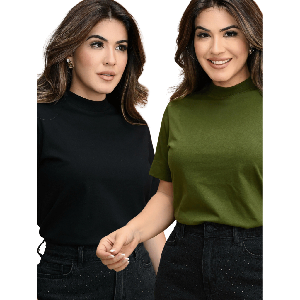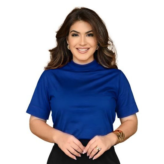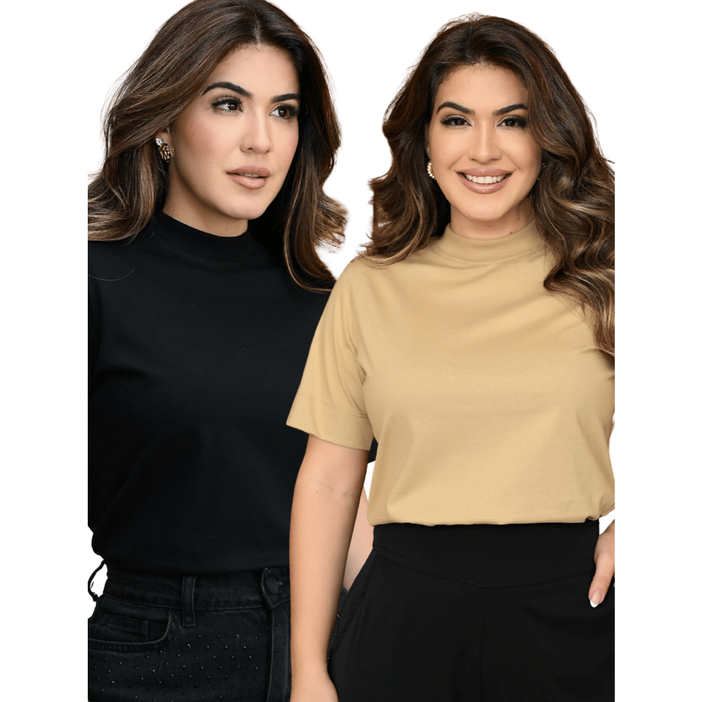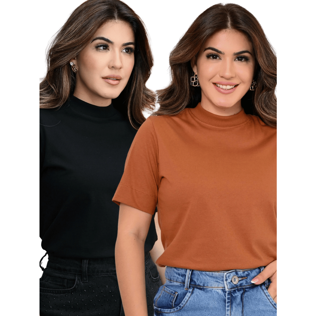BLUSA GOLA ALTA FEMININA 100% ALGODÃO MANGA CURTA