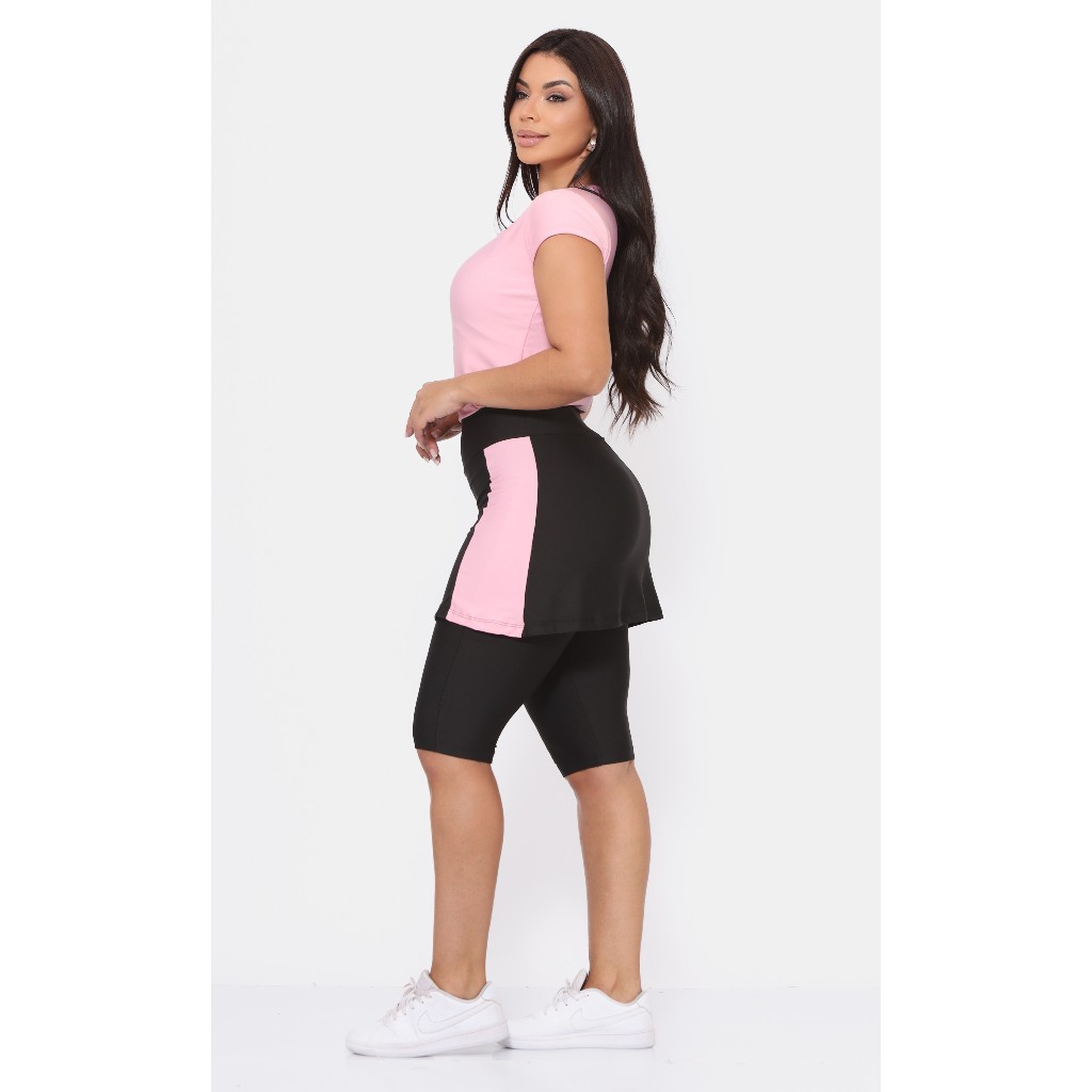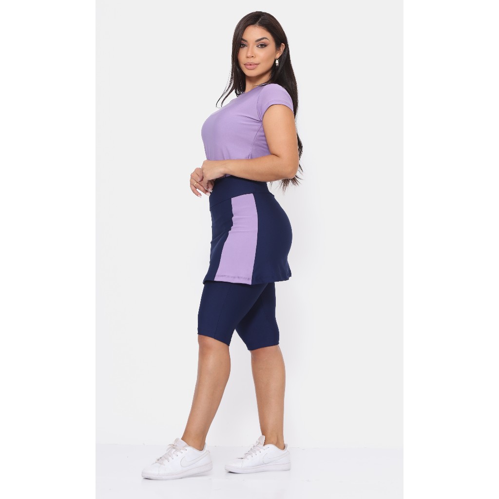 Conjunto Moda Evangélica Fitness Com Bolso Suplex Bicolor