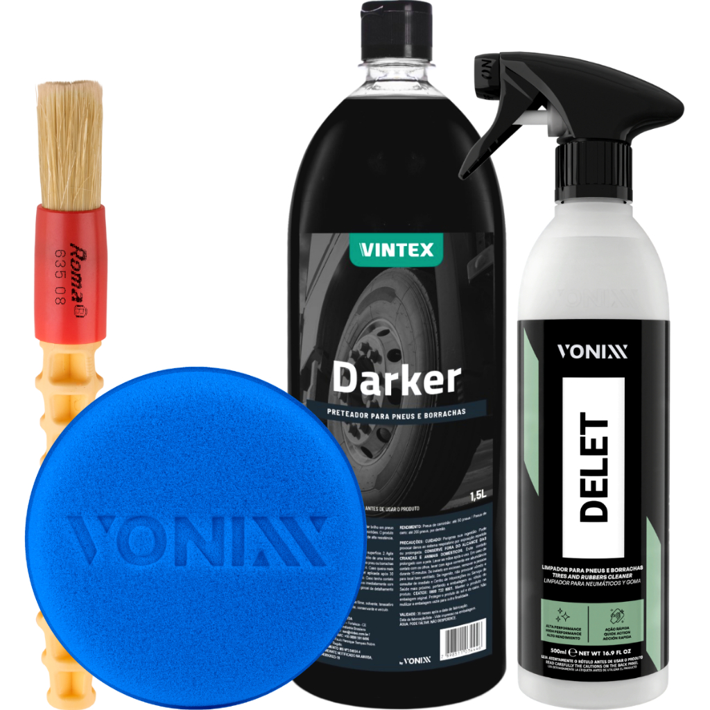 Darker Vintex Pneu Pretinho Automotivo Borracha + Delet Desencarde Pneu 500ml Vonixx