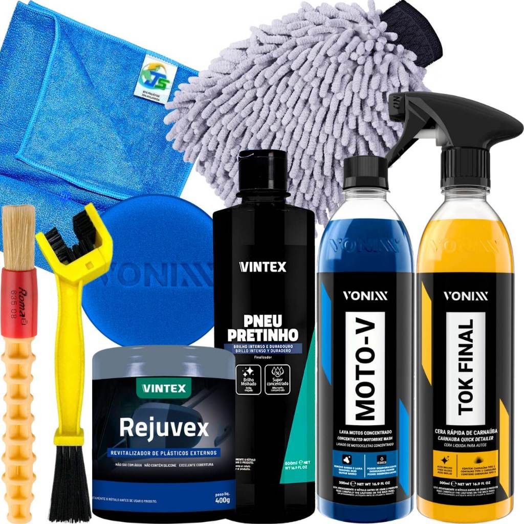 Kit Completo Lavagem de Moto Tok Final Moto-V Pneu Pretinho