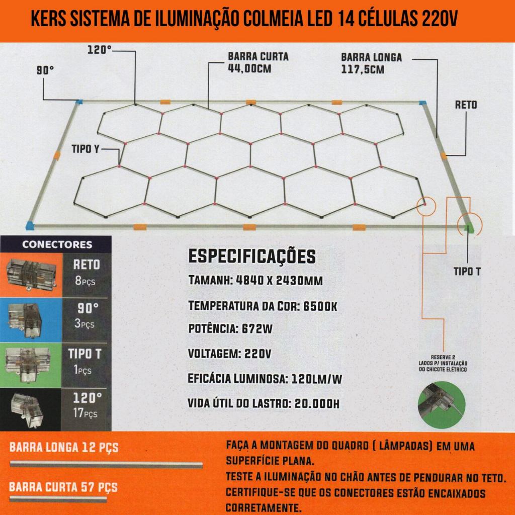 Luminária LED em Colmeia Sequencial 14 Células para Estetica Automotiva Showroom Kers