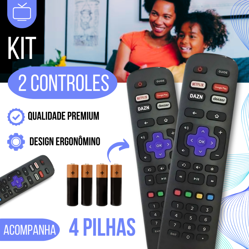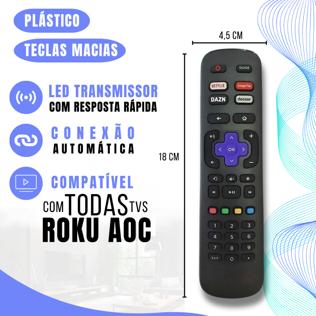 Controle Remoto TV Smart AOC Roku Netflix GloboPlay DAZN Deezer tdd