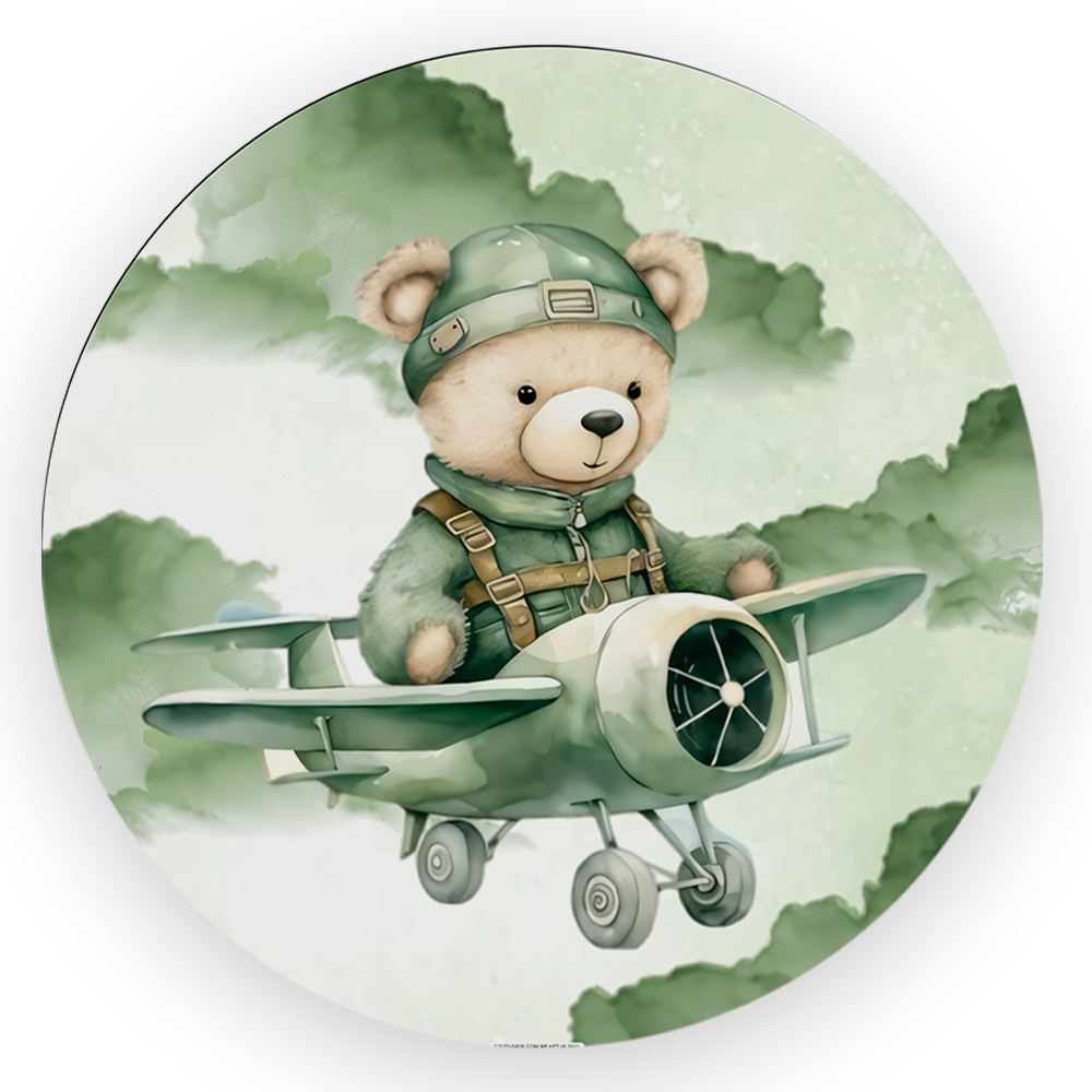 Kit Capa Painel Redondo + Trio Cilindro Decoração Ursinho Baby Verde Aviador Festa Aniversário Veste Fácil