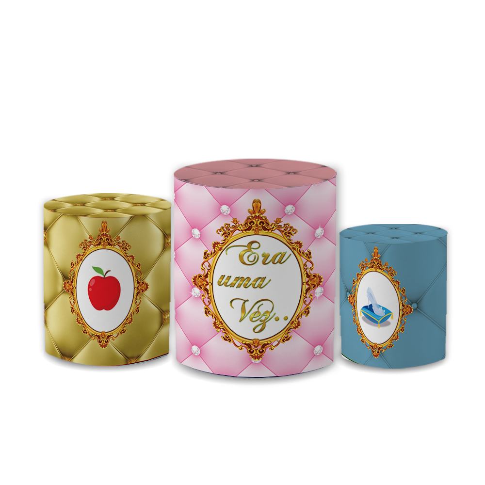 Kit Capa Painel Redondo Festivo + Trio de Cilindros Sublimado Decoração Festa Tema Princesas