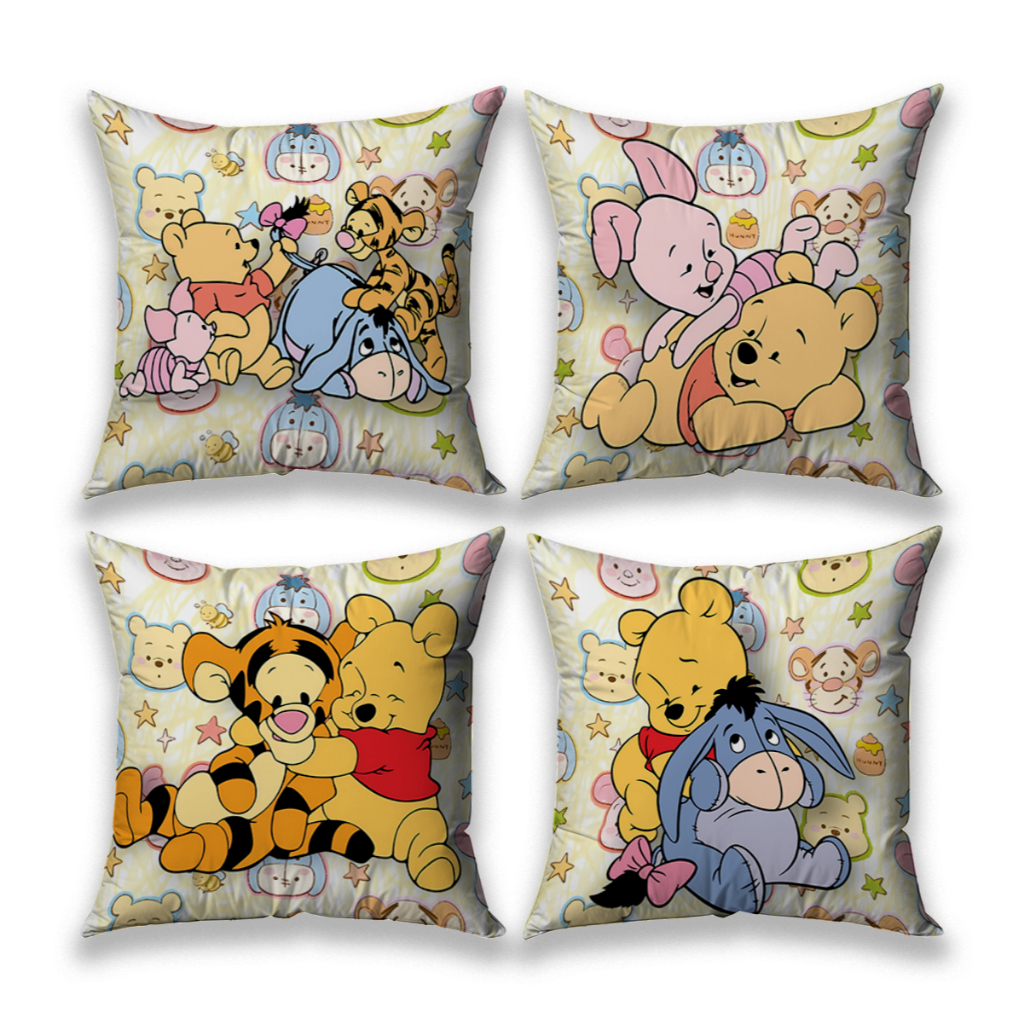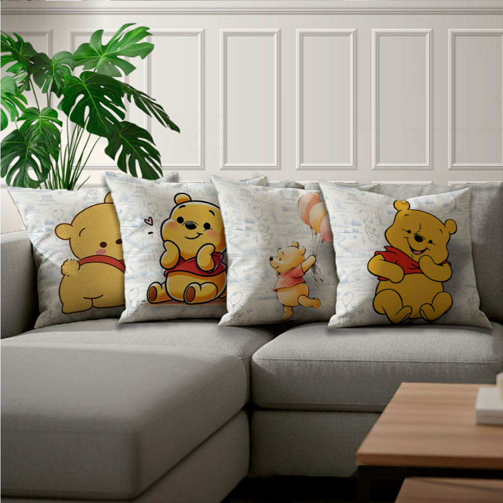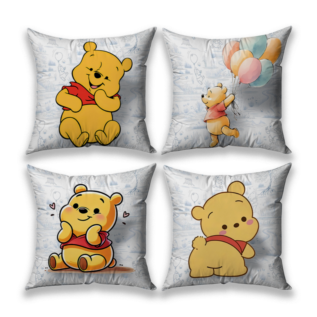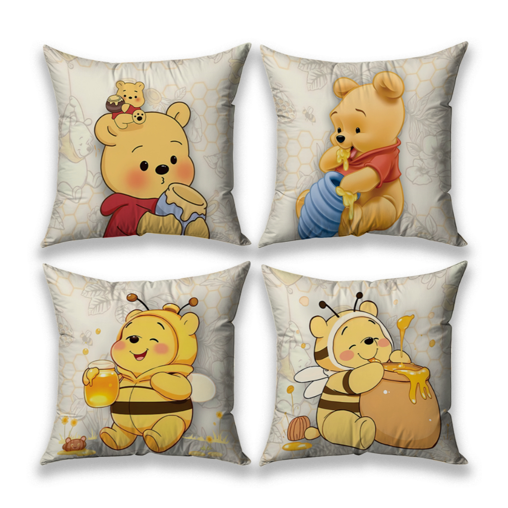 Kit 4 Capas de Almofadas Tema Ursinho Mel Turminha Decoração Cute Quarto Sala Cama Sofá