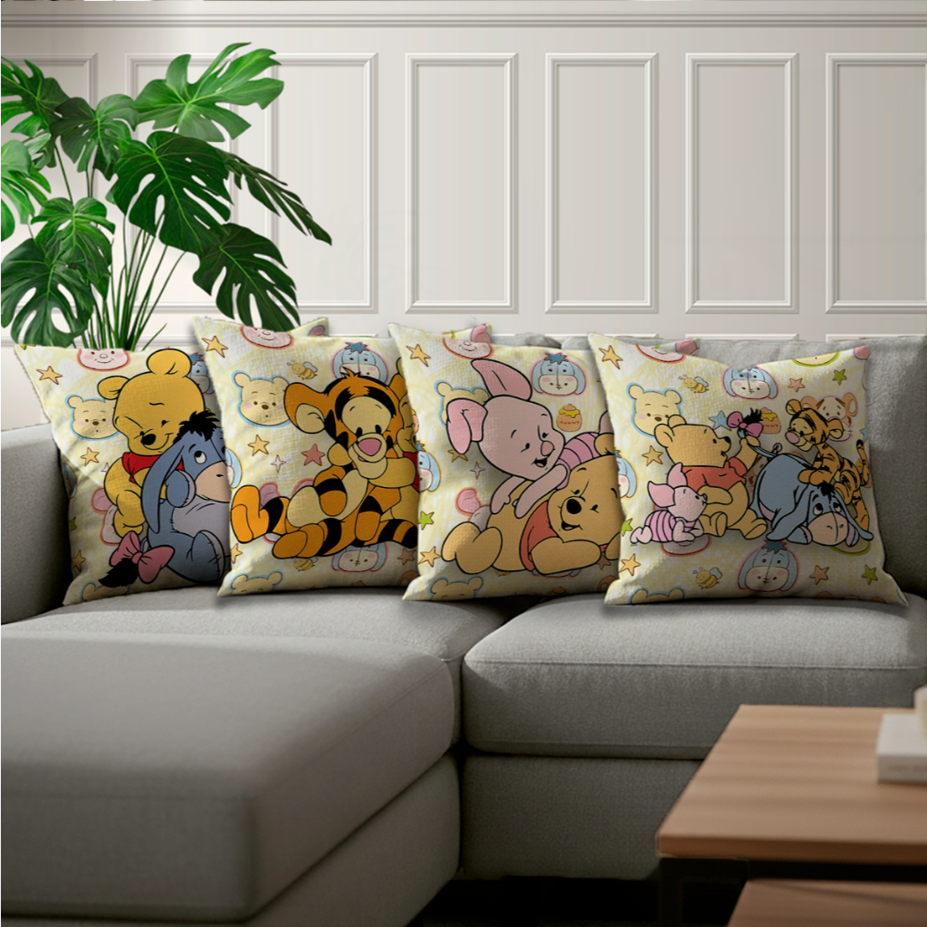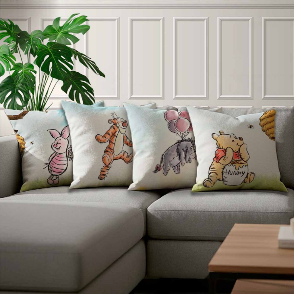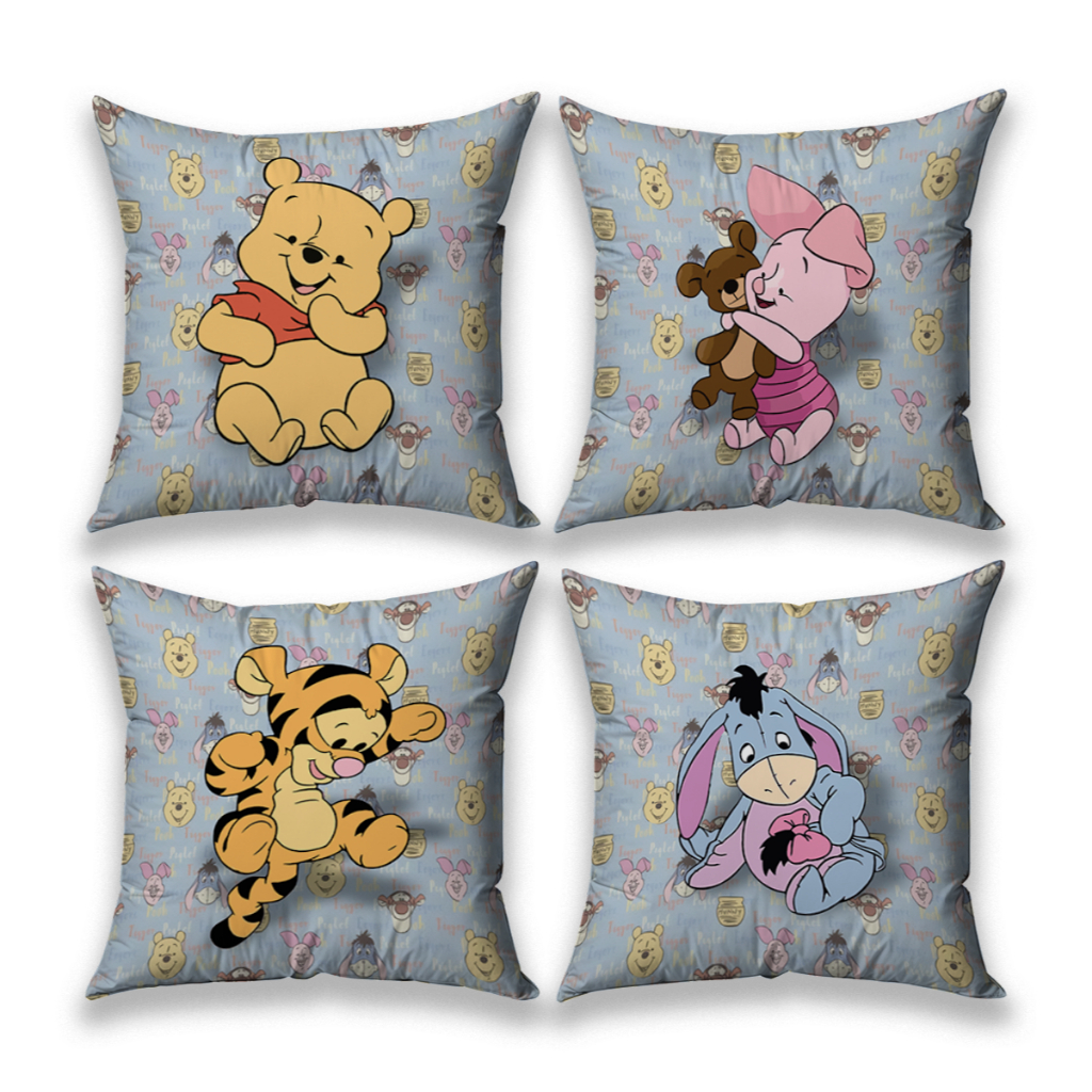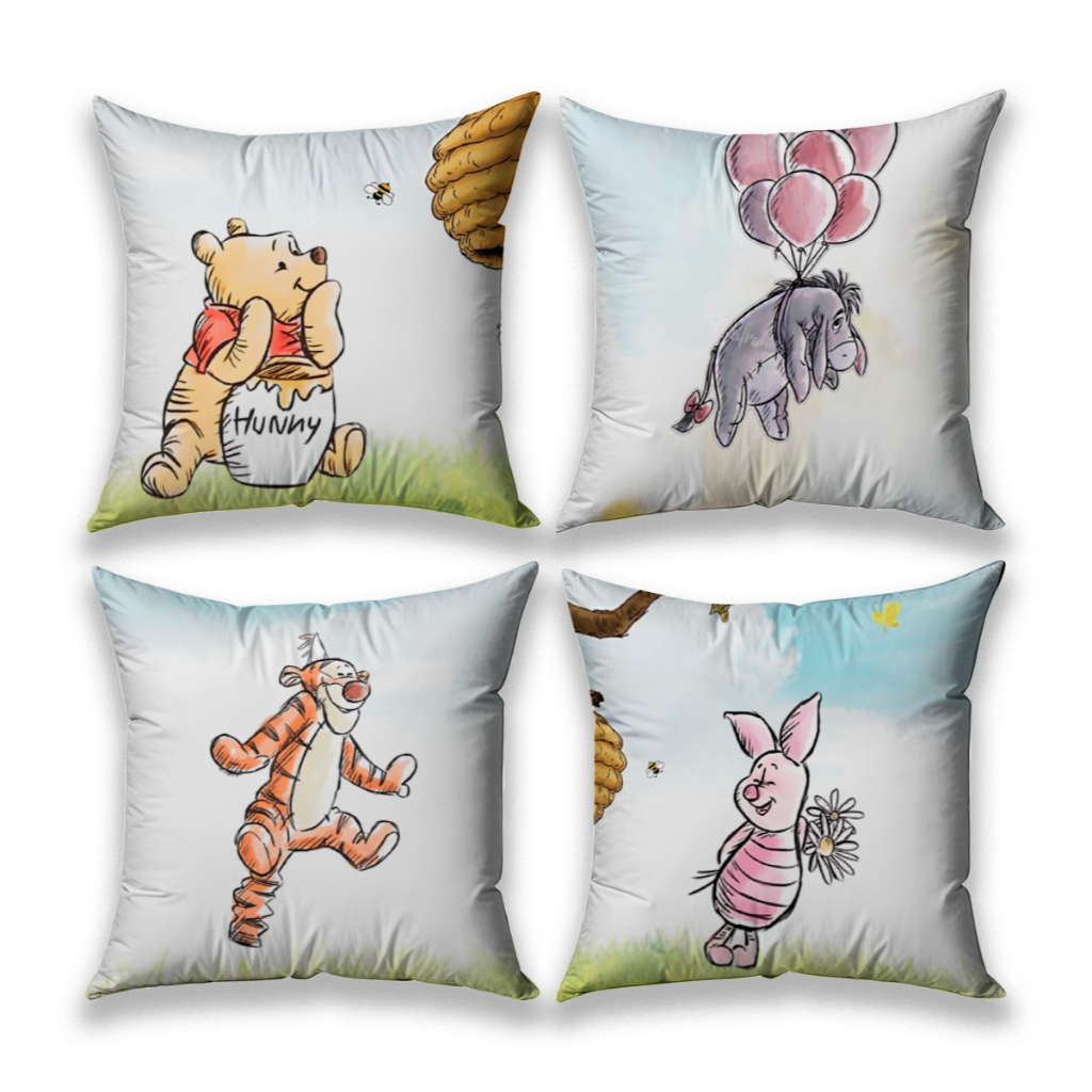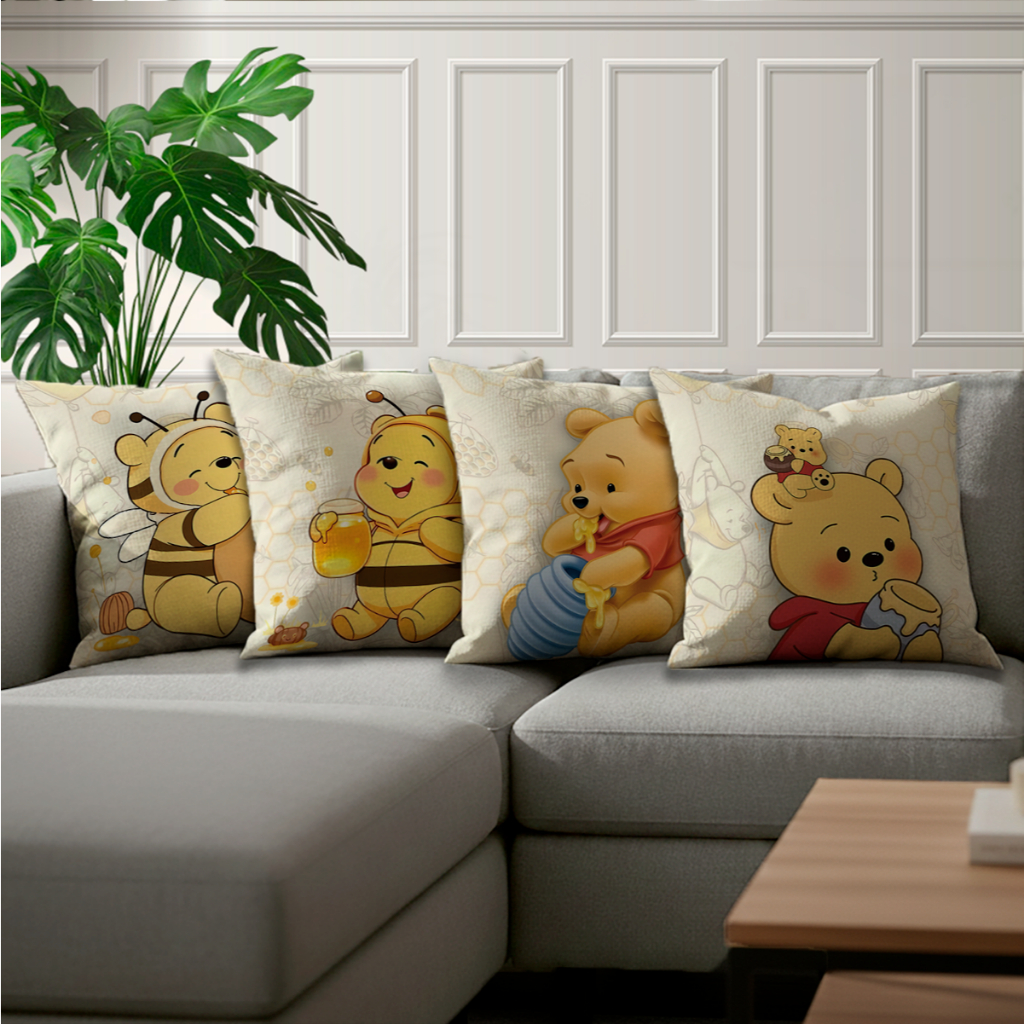 Kit 4 Capas de Almofadas Tema Ursinho Mel Turminha Decoração Cute Quarto Sala Cama Sofá