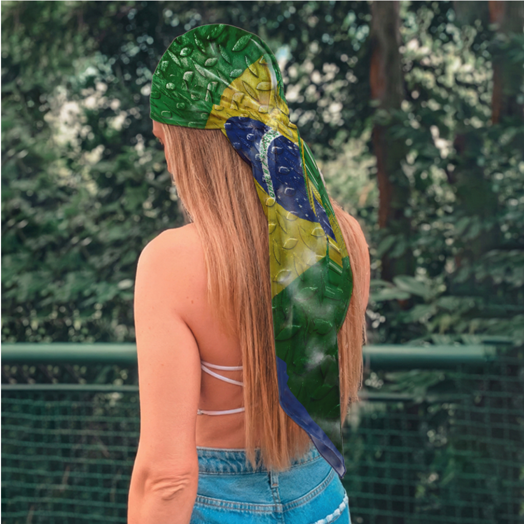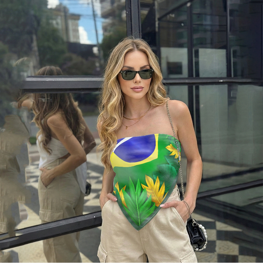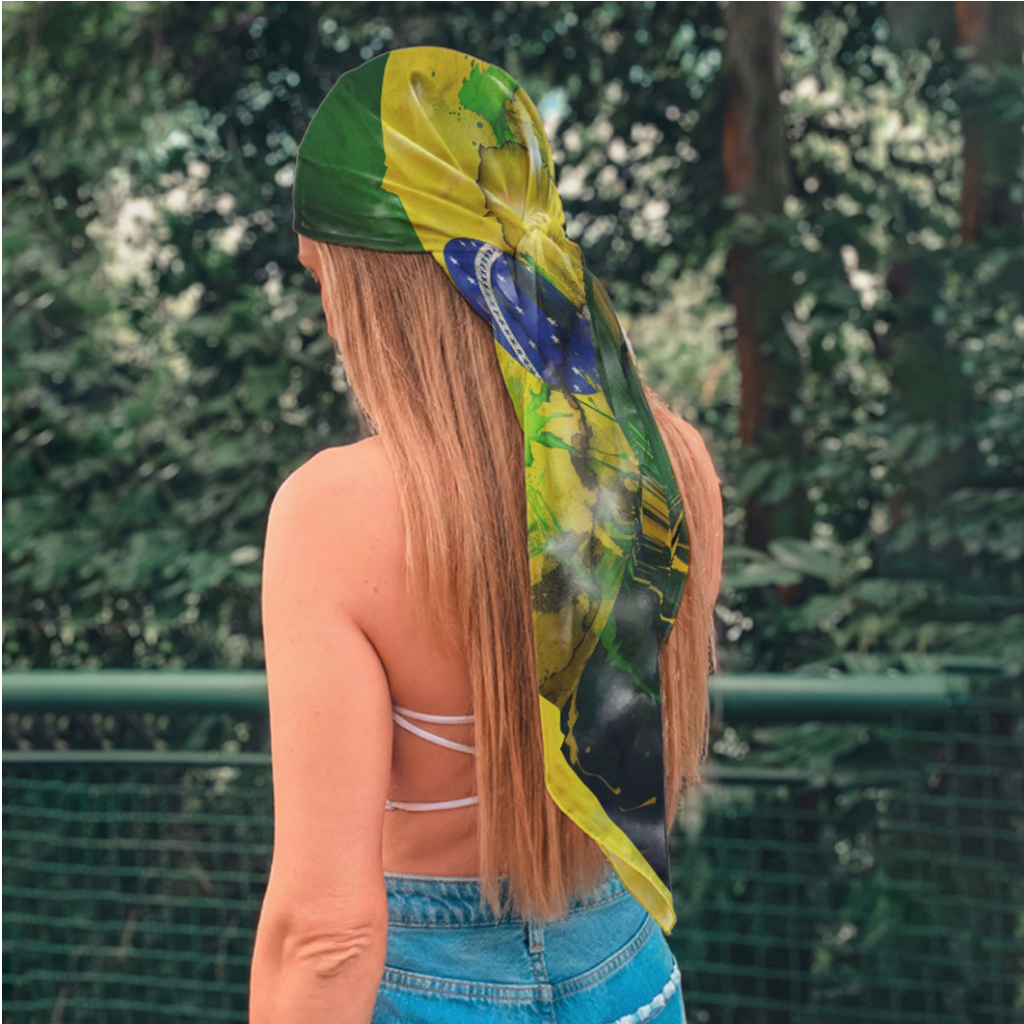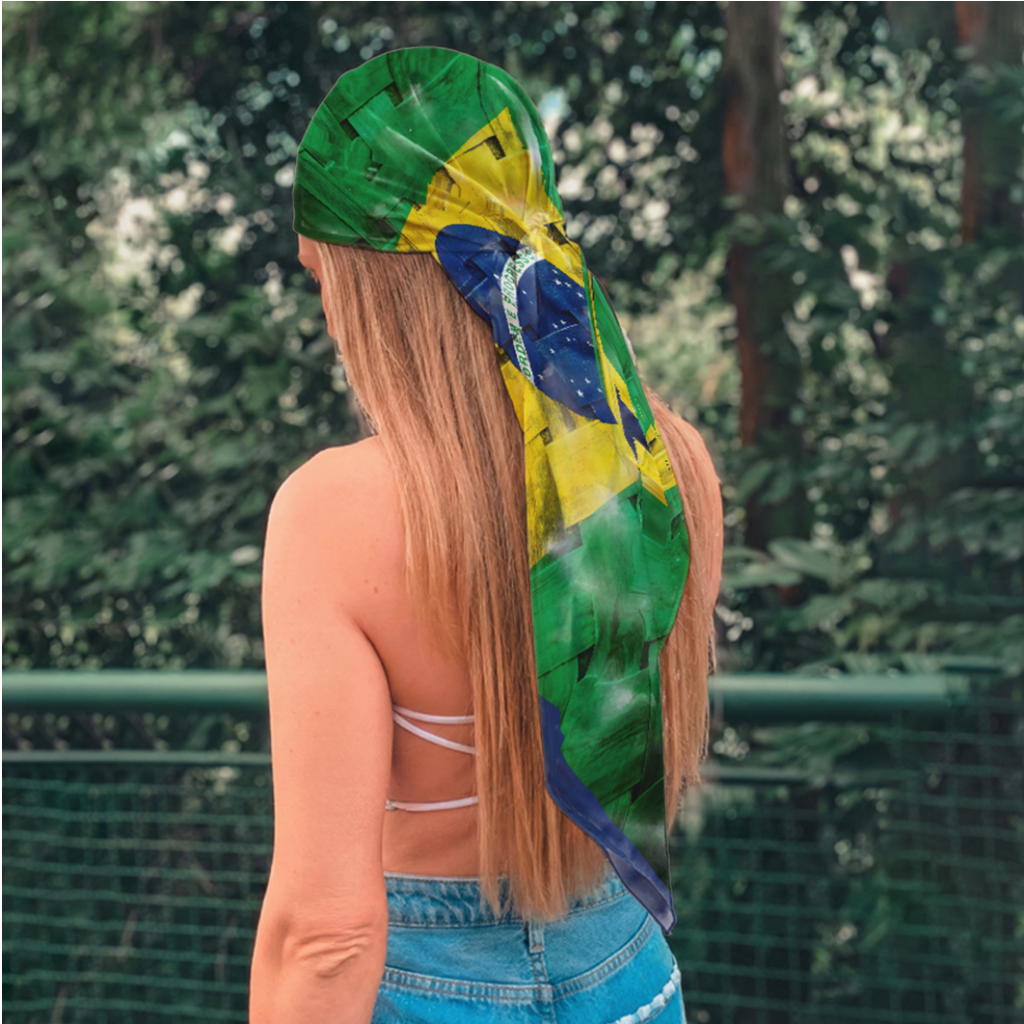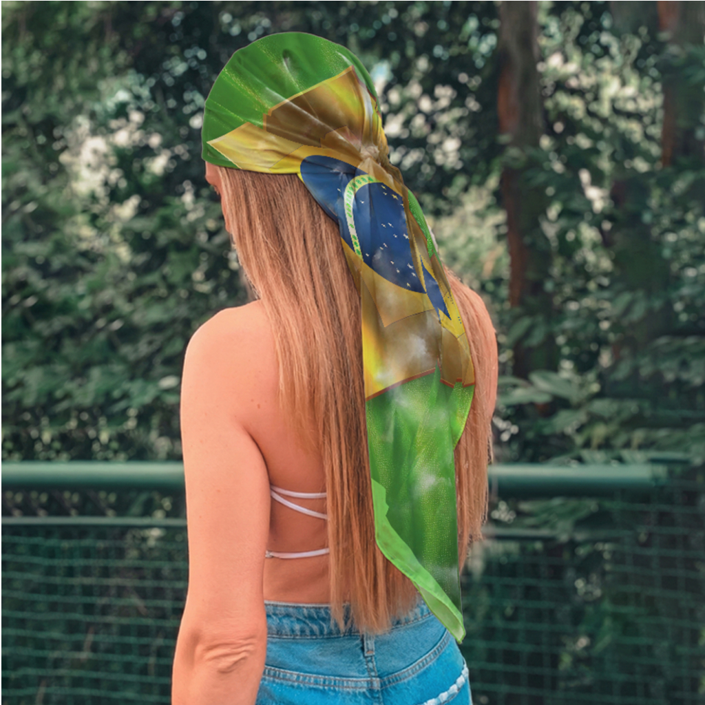 Lenço De Cetim Bandana Look Fashion Feminino Multiuso Estampa Bandeira Do Brasil Hexa Copa 2026