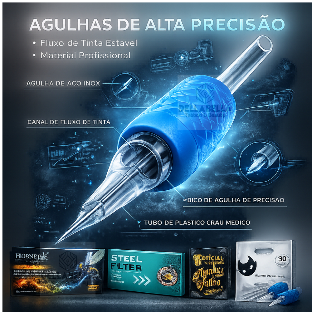 KIT 10 Agulhas Aston Machine e 10 Biqueiras Azul ou rosa TRANSPARENTE Electric Ink Tatuagem Tattoo